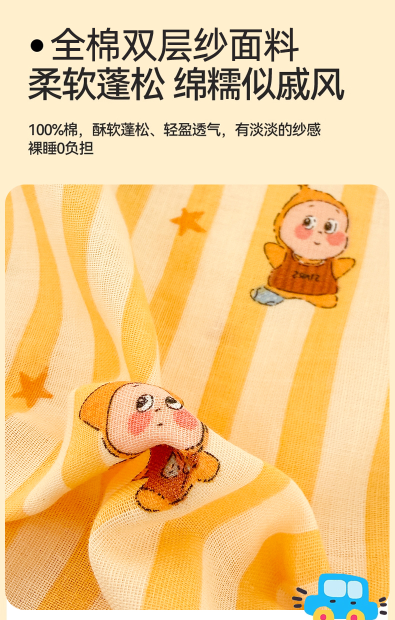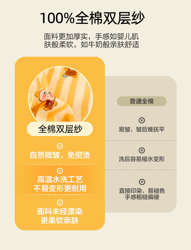 商品名称:呗旺鹿 2026新款A类全棉纯棉双层纱儿童枕头套纯棉枕芯内胆套 甜熊兔