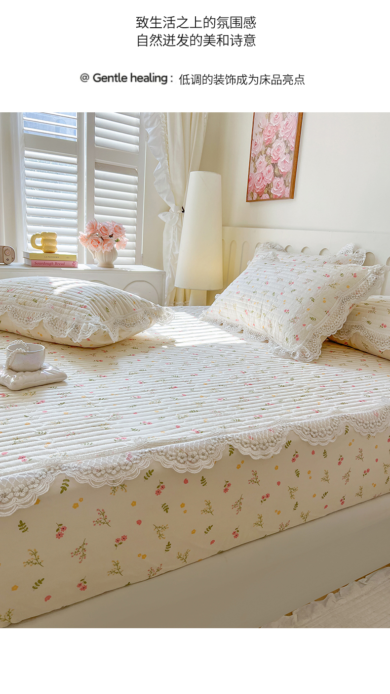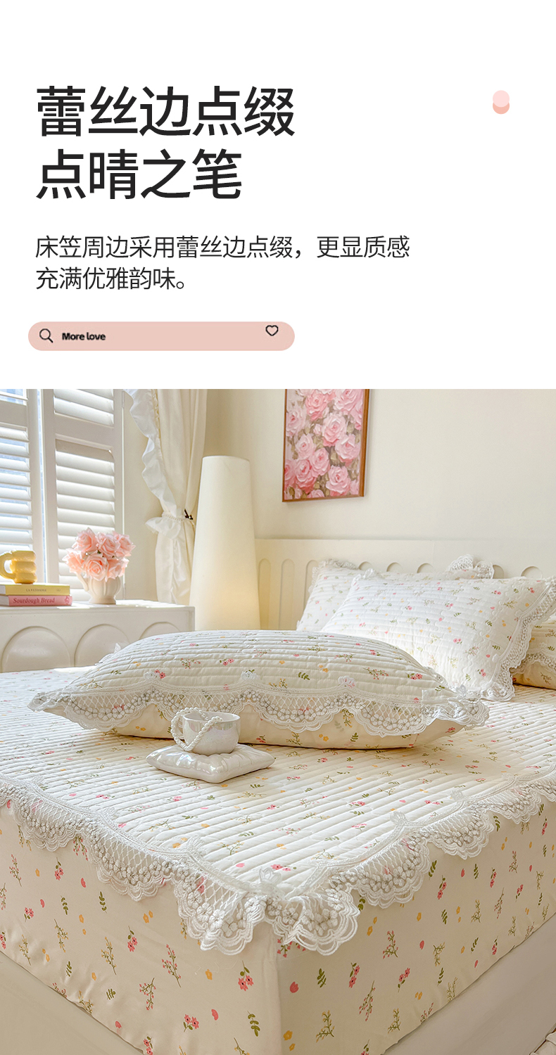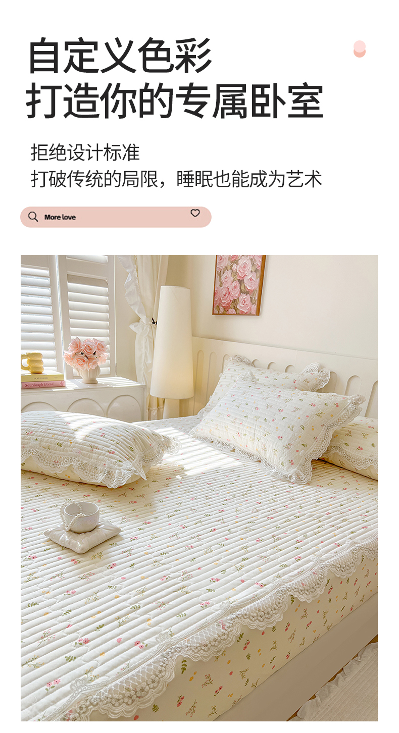 (总)网红馆(ck家纺) 2026新款全棉蕾丝花边床裙款床笠晨暮花间系列,绯红,粉色,麦绿,米色,浅紫,雾蓝