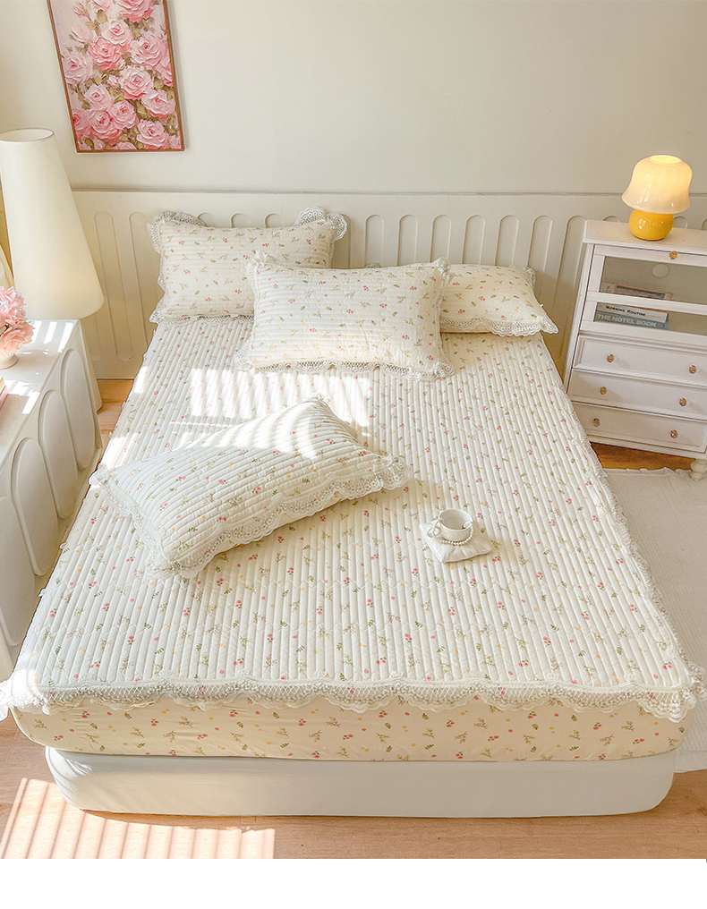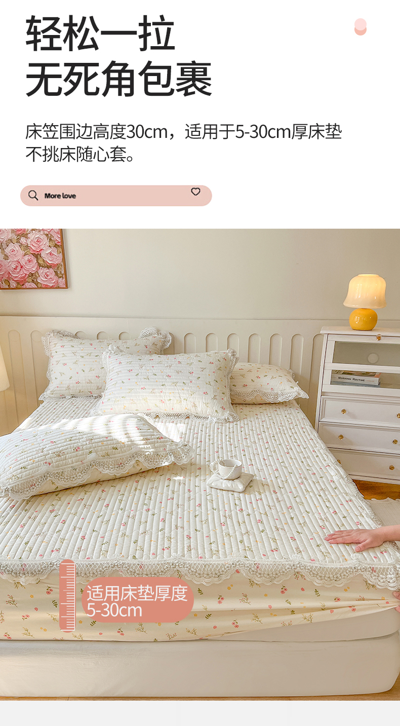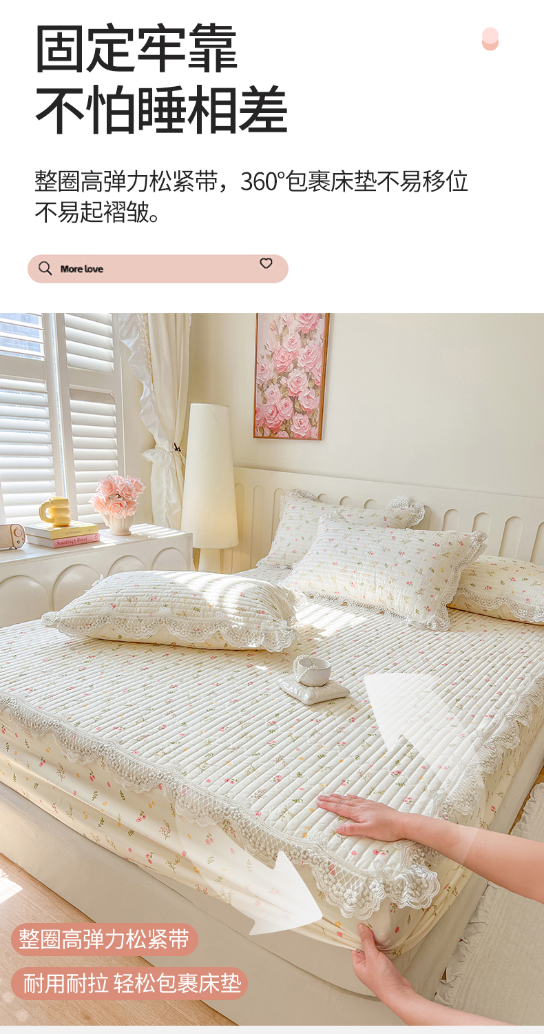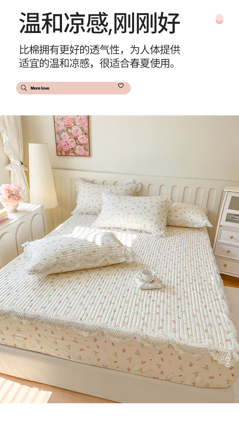 (总)网红馆(ck家纺) 2026新款全棉蕾丝花边床裙款床笠晨暮花间系列,绯红,粉色,麦绿,米色,浅紫,雾蓝