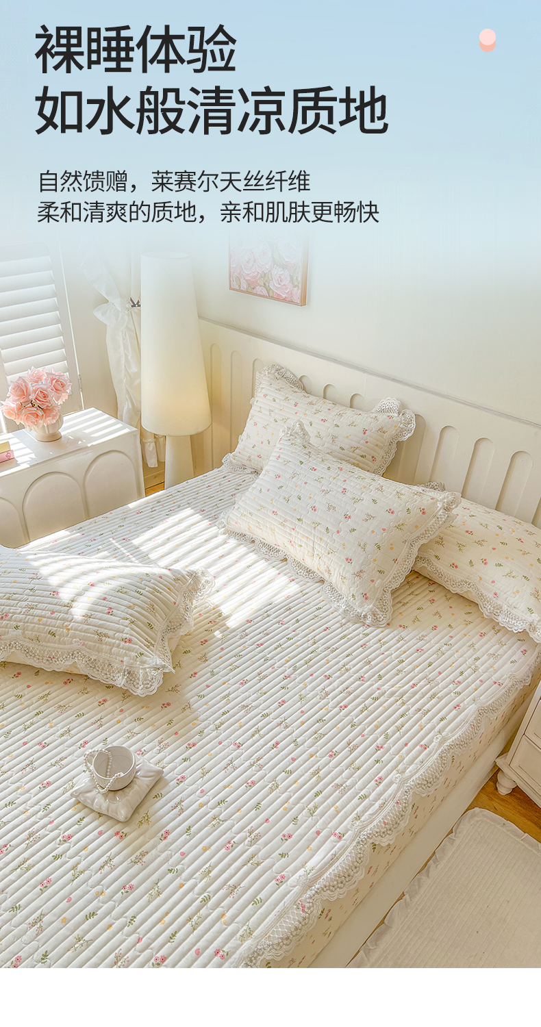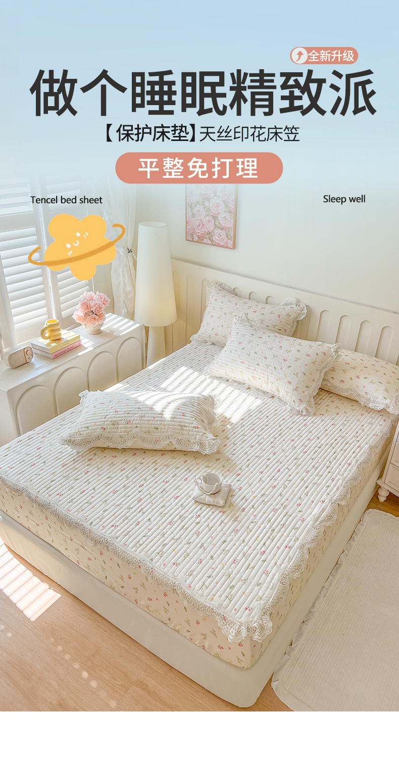 商品名称:网红馆(ck家纺) 2026新款莱赛尔天丝印花床笠 春芽