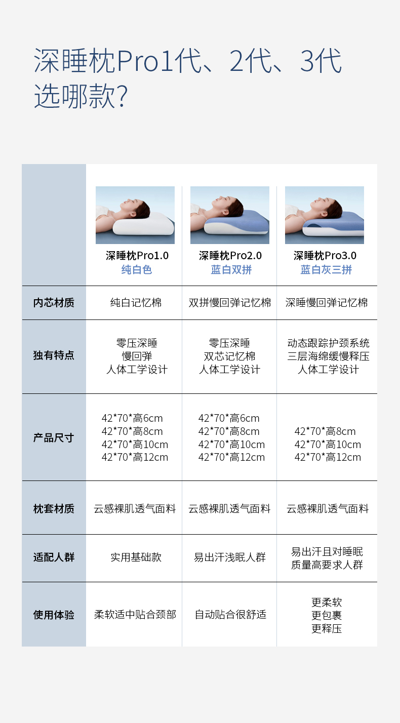 (总)美丽折家纺 【某朵同款第3代加强版】2026新款零压力慢回弹护颈枕头 三芯记忆棉枕头枕芯 ,白灰色,深蓝色,灰色,单个礼盒,白色