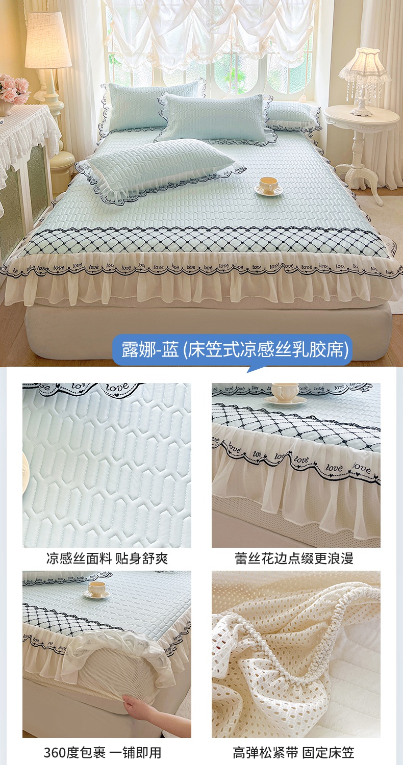 网红馆(ck家纺) 2026新款凉感丝床笠式床裙乳胶凉席三件套-露娜 露娜-驼