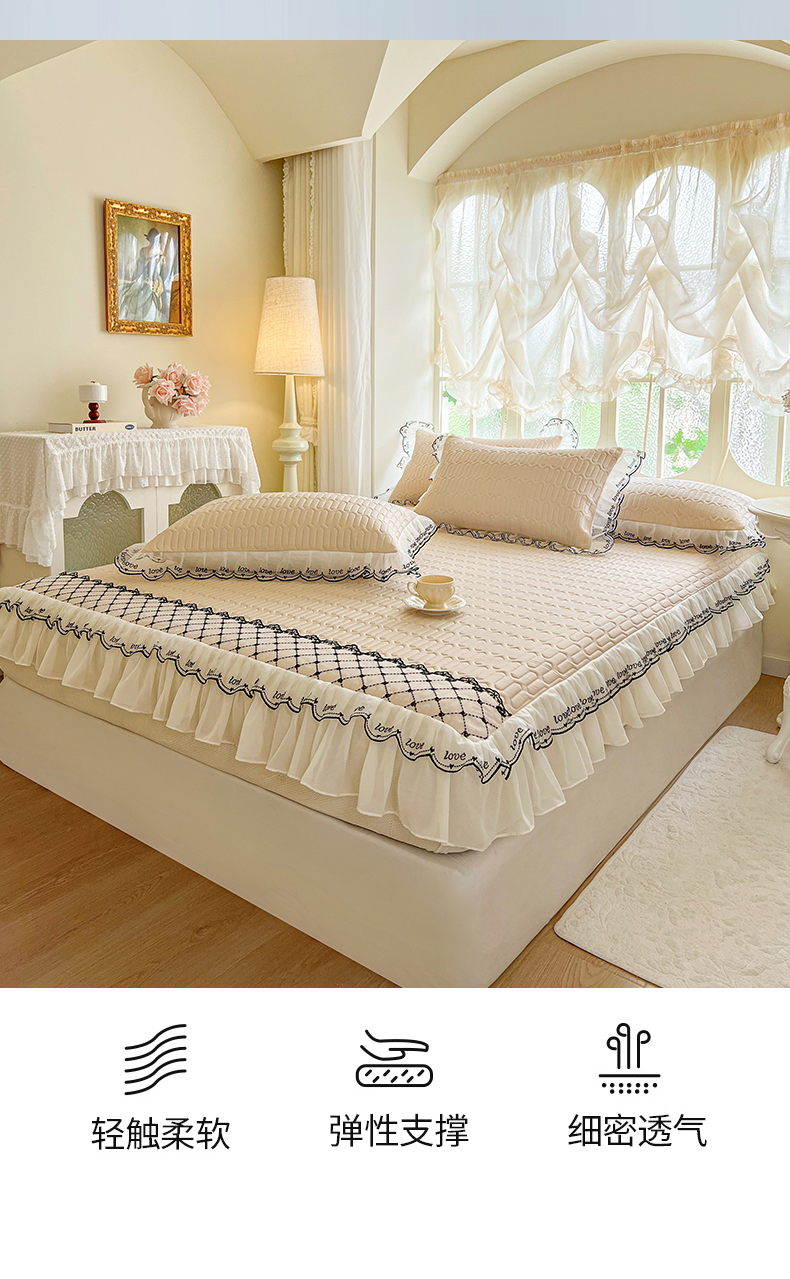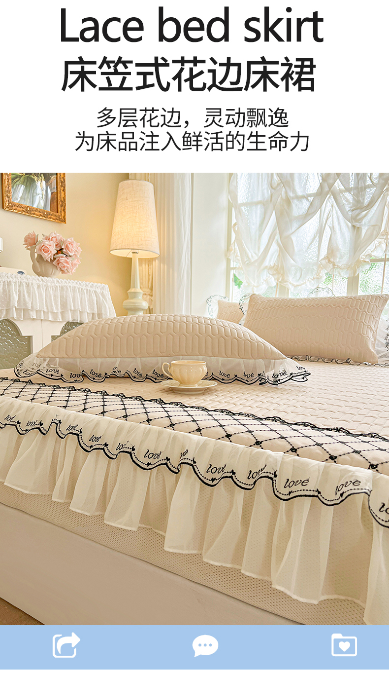 (总)网红馆(ck家纺) 2026新款全棉蕾丝花边床裙款床笠晨暮花间系列,绯红,粉色,麦绿,米色,浅紫,雾蓝