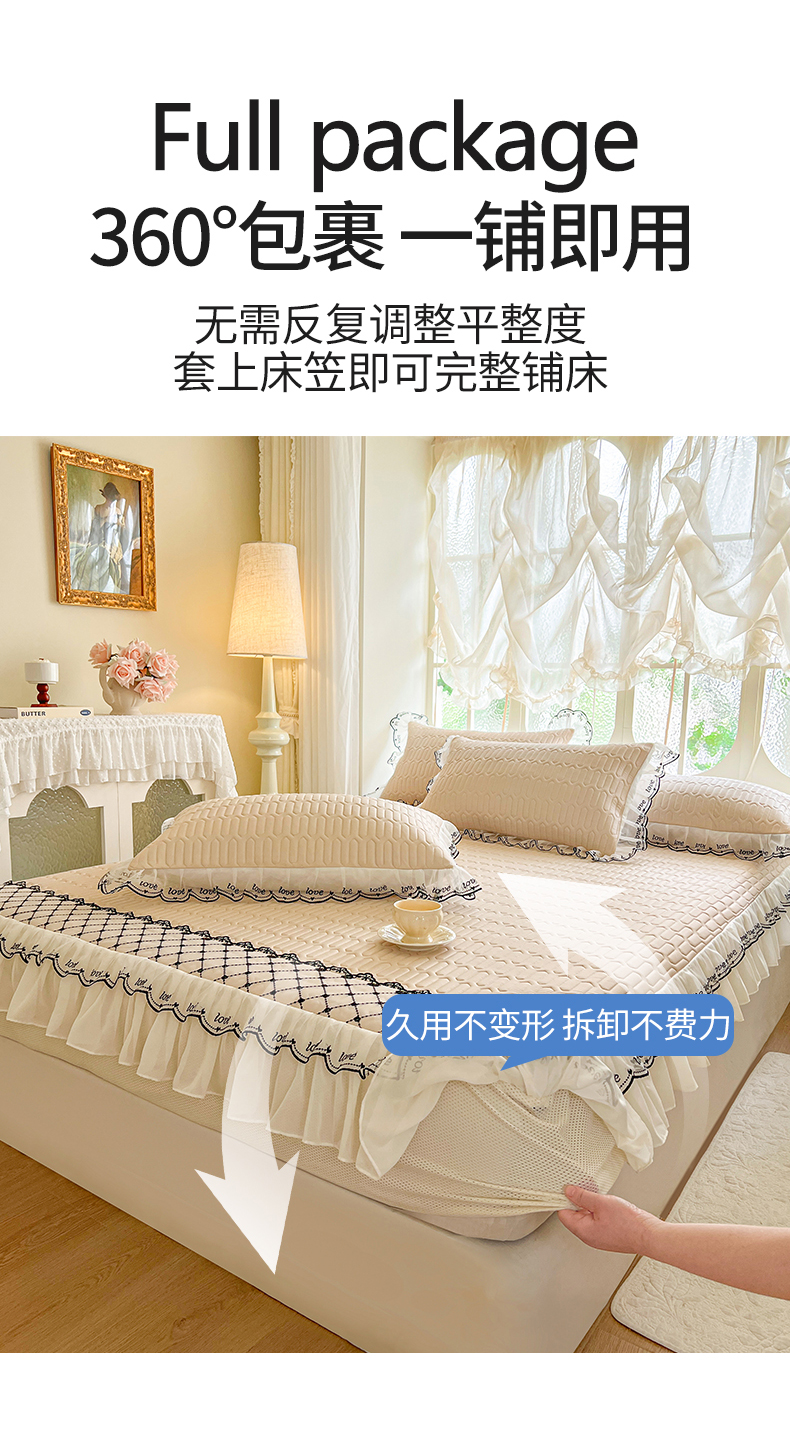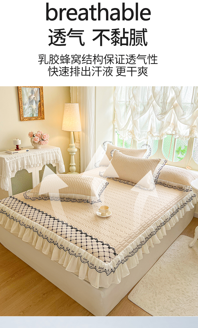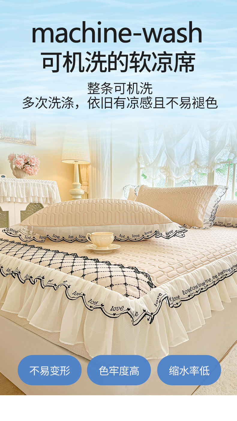 商品名称:网红馆(ck家纺) 2026新款凉感丝床笠式床裙乳胶凉席三件套-露娜 露娜-驼