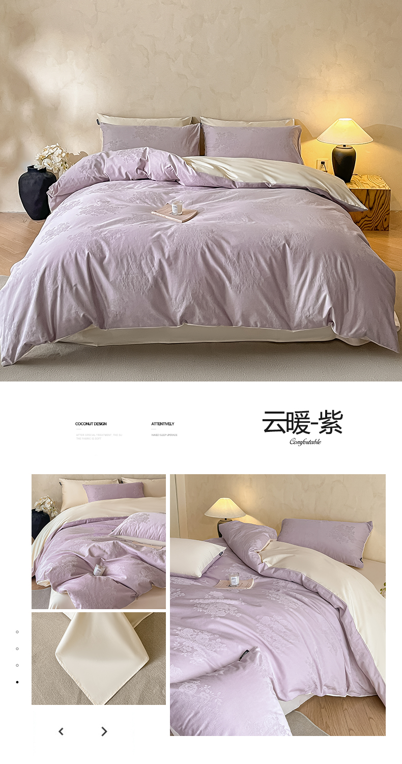 当前位置: 91家纺网 > 商品网购 > 床品套件 > 四件套 > 全棉普通四件套 > 涵宸家纺 2026新款全棉提花里拉系列四件套 云暖-紫