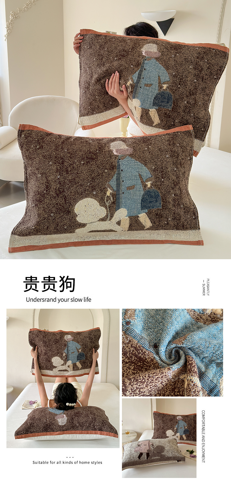 商品名称:朴尔家纺-毛巾被 2026新款全棉欣软系列定位四层加厚柔软纱布枕巾 贵贵狗