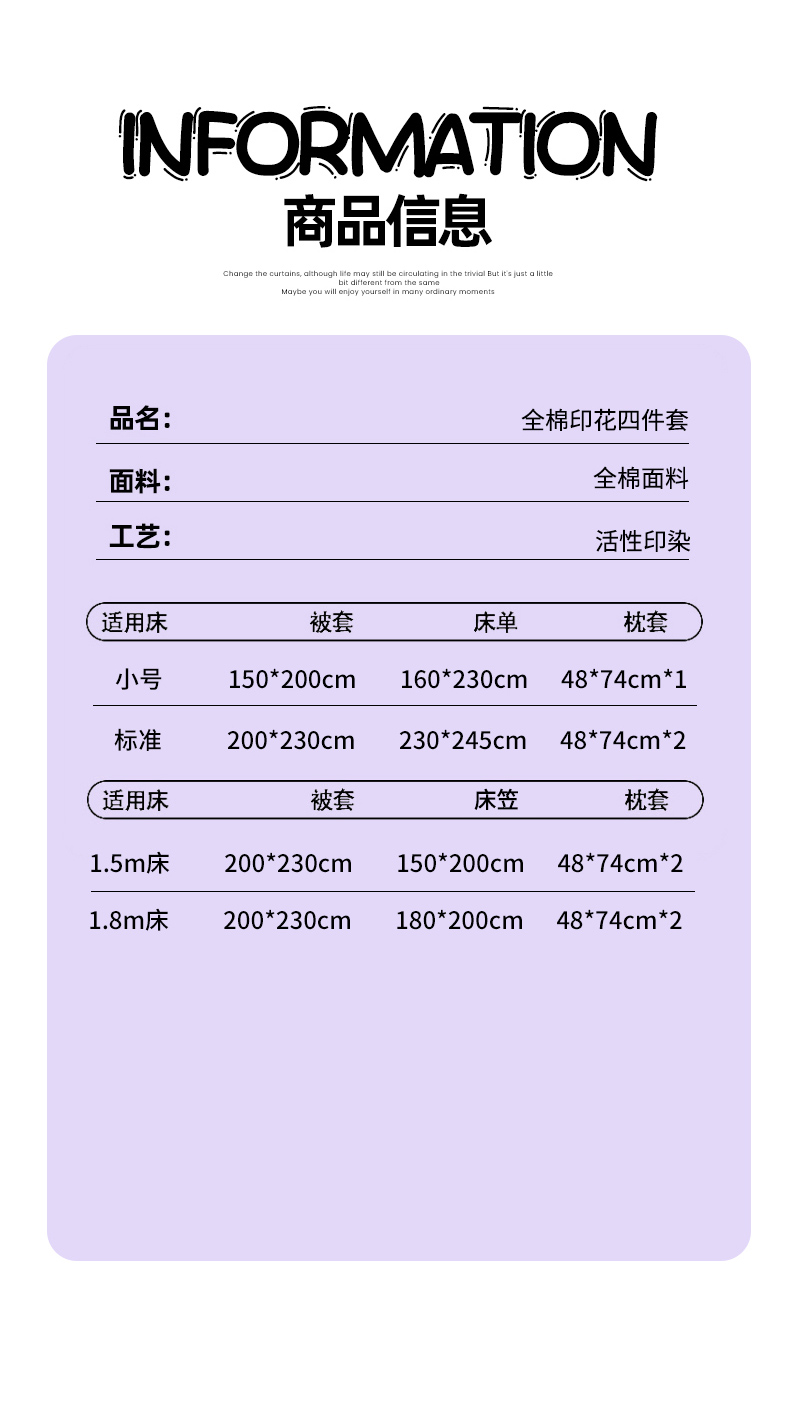 【床笠款】1.8四件套-被套200x230 | ¥90.00 |