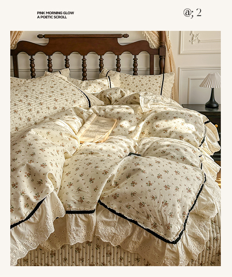 (总)美梦家纺 2026新款高克重全棉花边云感棉床盖四件套,希雅莉·米,雅格·粉,樱桃蜜·咖,尤丽叶·咖,紫藤碎花·咖,莓莓素语·粉,暖小象·兰,浅叶·米,希雅莉·灰