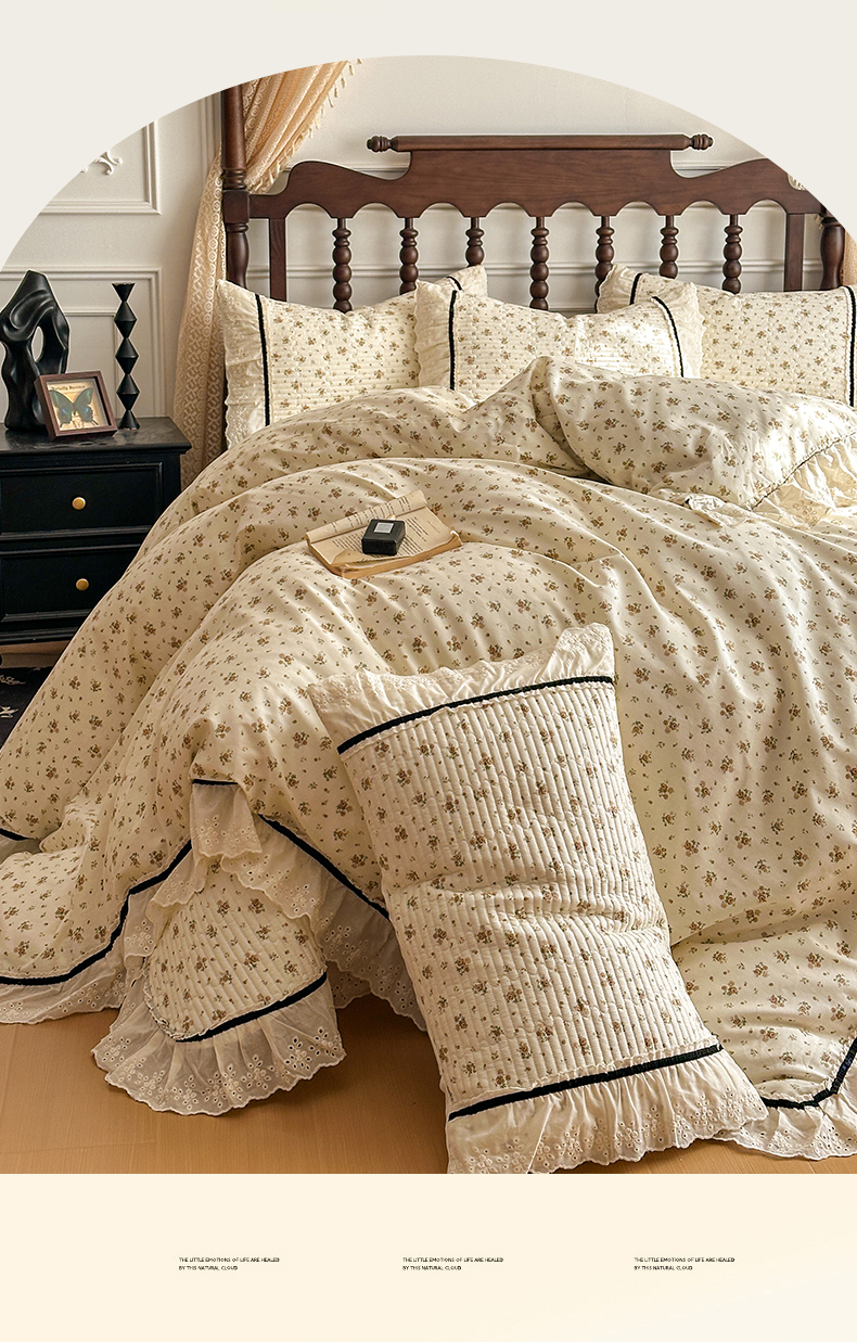 商品名称:美梦家纺 2026春夏新款全棉花边全棉床盖四件套系列 香叶之恋