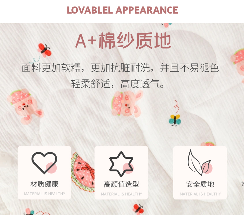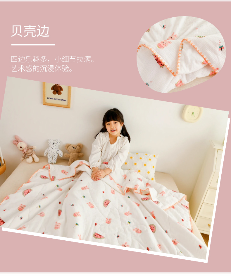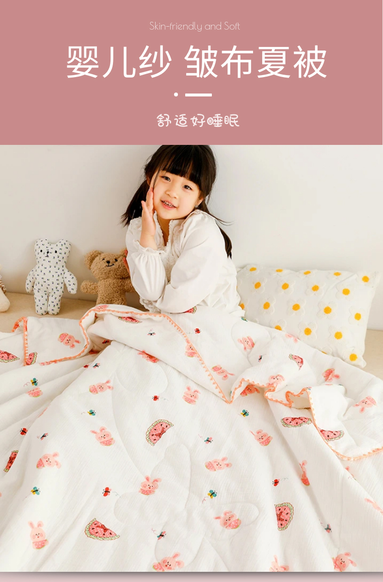 商品名称:十九色 2026新款婴儿纱皱布儿童贴身夏被被子被芯 吃西瓜