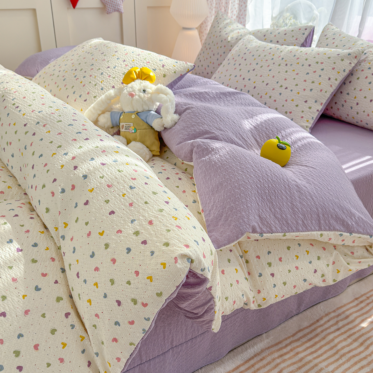 竹合家纺 2026春夏新品高克重A类泡芙纱泡泡皱皱纱四件套 晚安宝贝
