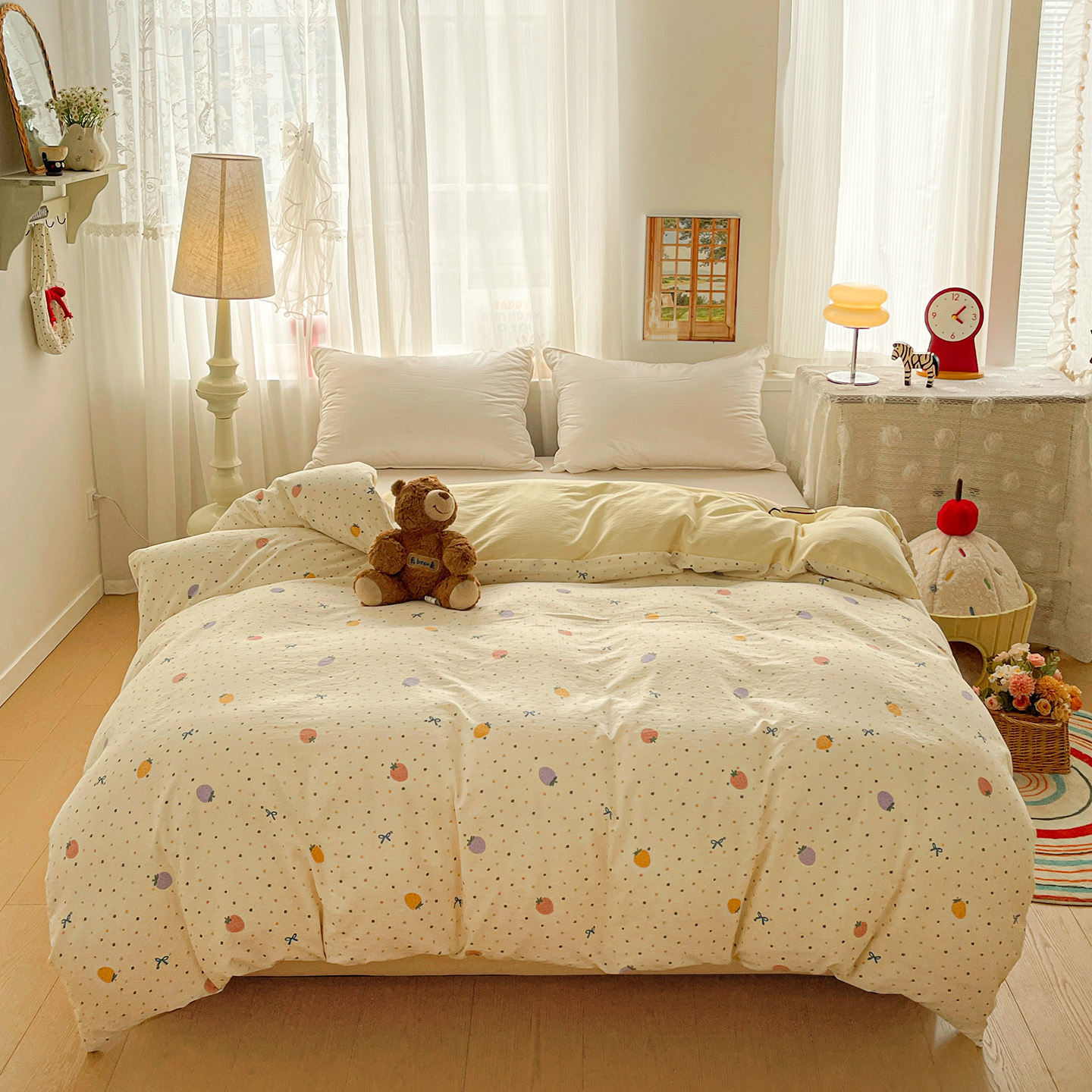 (总)赫然家纺 2026春夏新款云感皱皱纱四件套套件,北欧格,贝拉花园,草莓多多,花海兔,花开半夏,陌上花开,组合图仅供展示-不可下单