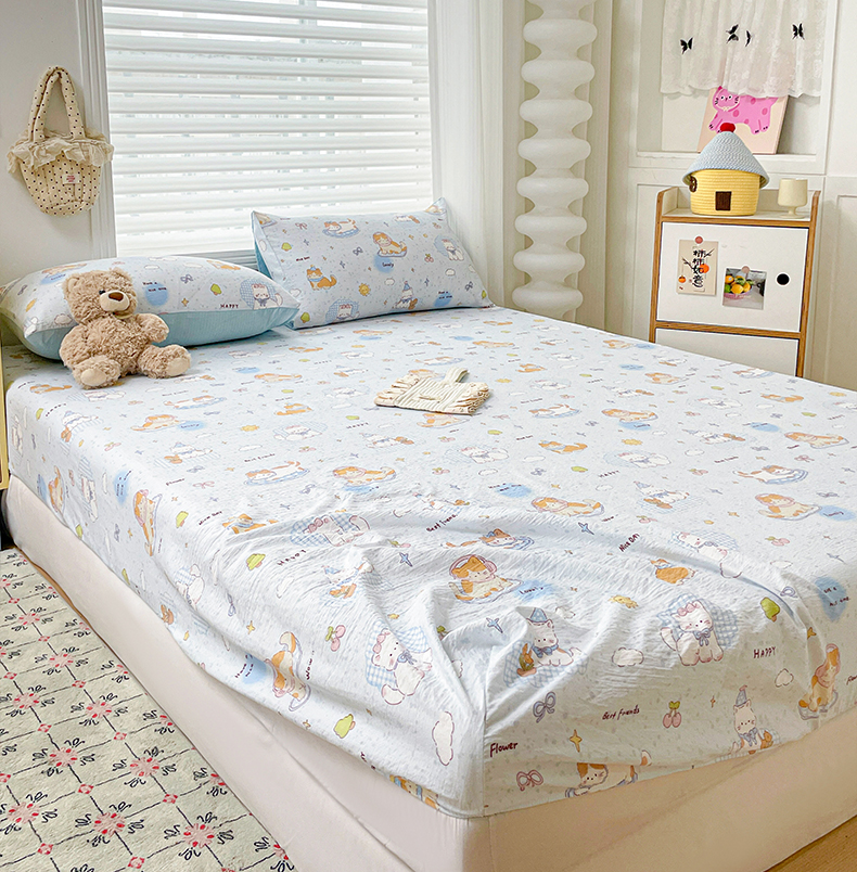 • 91家纺网 家纺一手货源 找家纺 立森 2026春夏新款云感皱皱纱泡芙纱床笠单枕套系列-床拍图 铅笔熊,铅笔熊