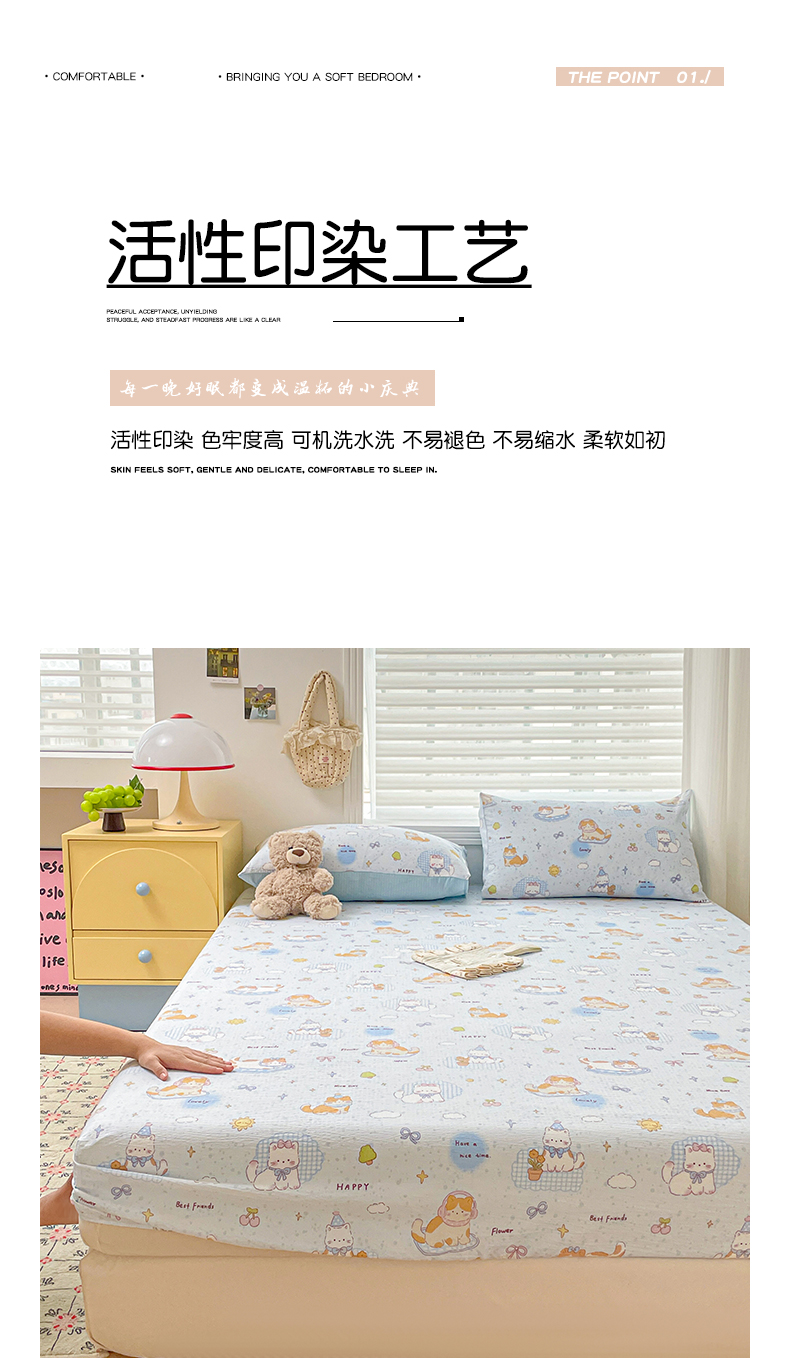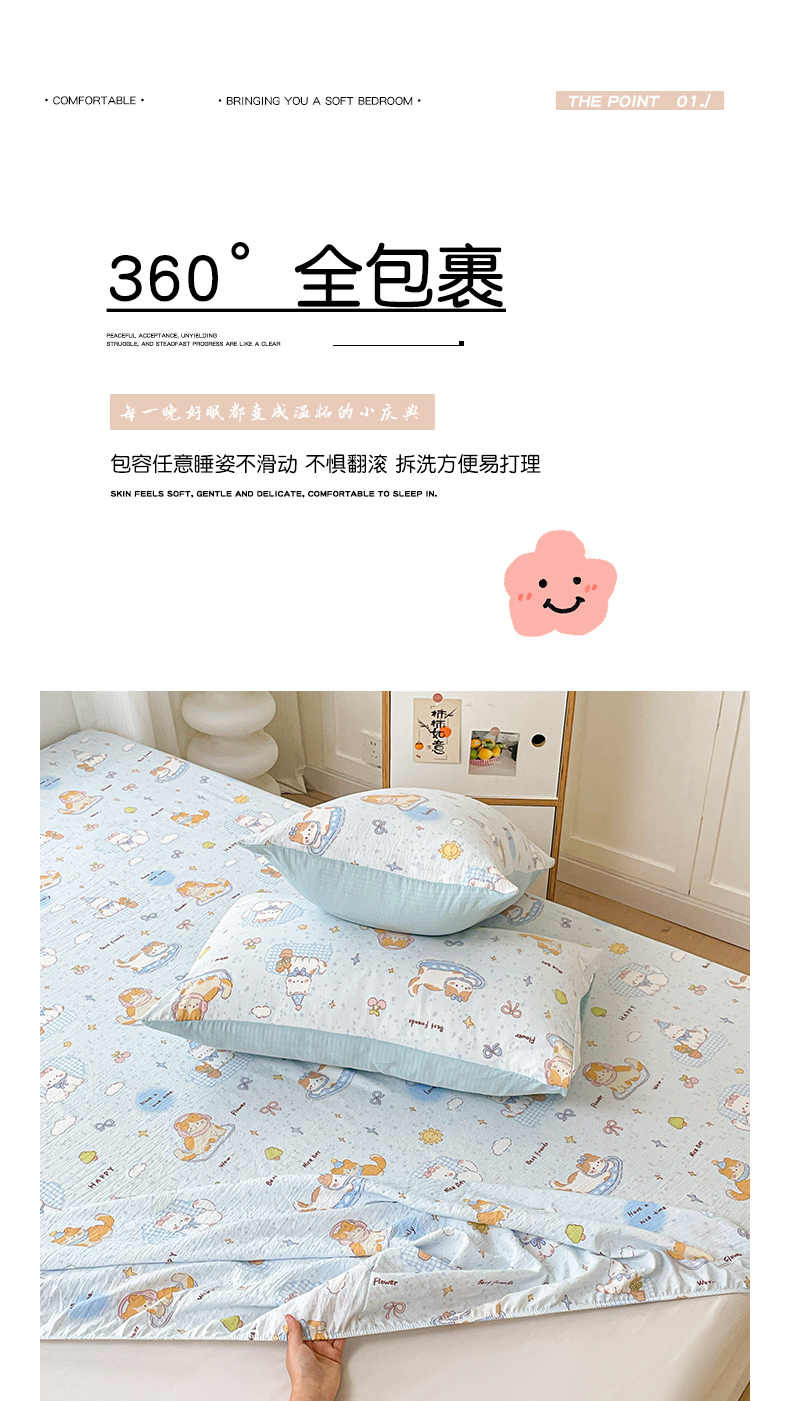 • 91家纺网 家纺一手货源 找家纺 立森 2026春夏新款云感皱皱纱泡芙纱床笠单枕套系列-叠拍图 碎花萌宠