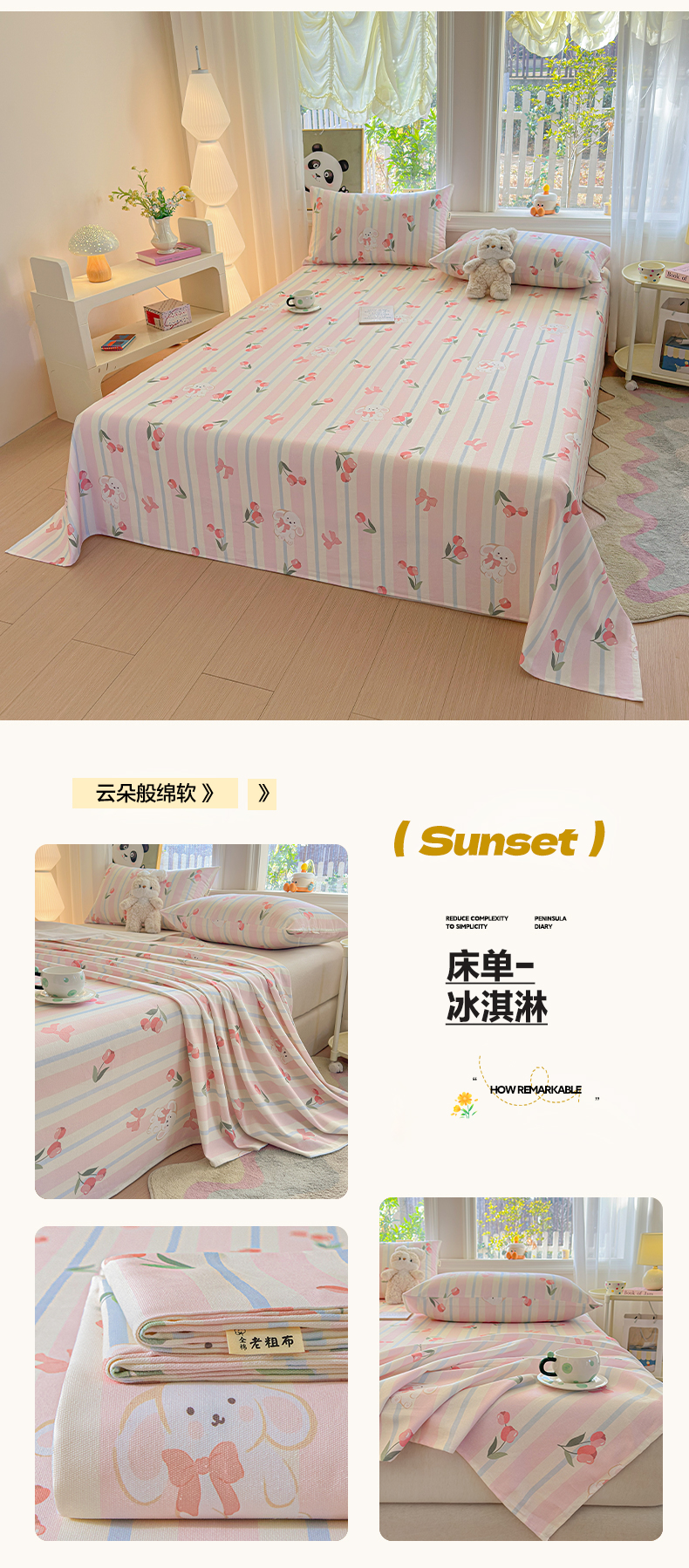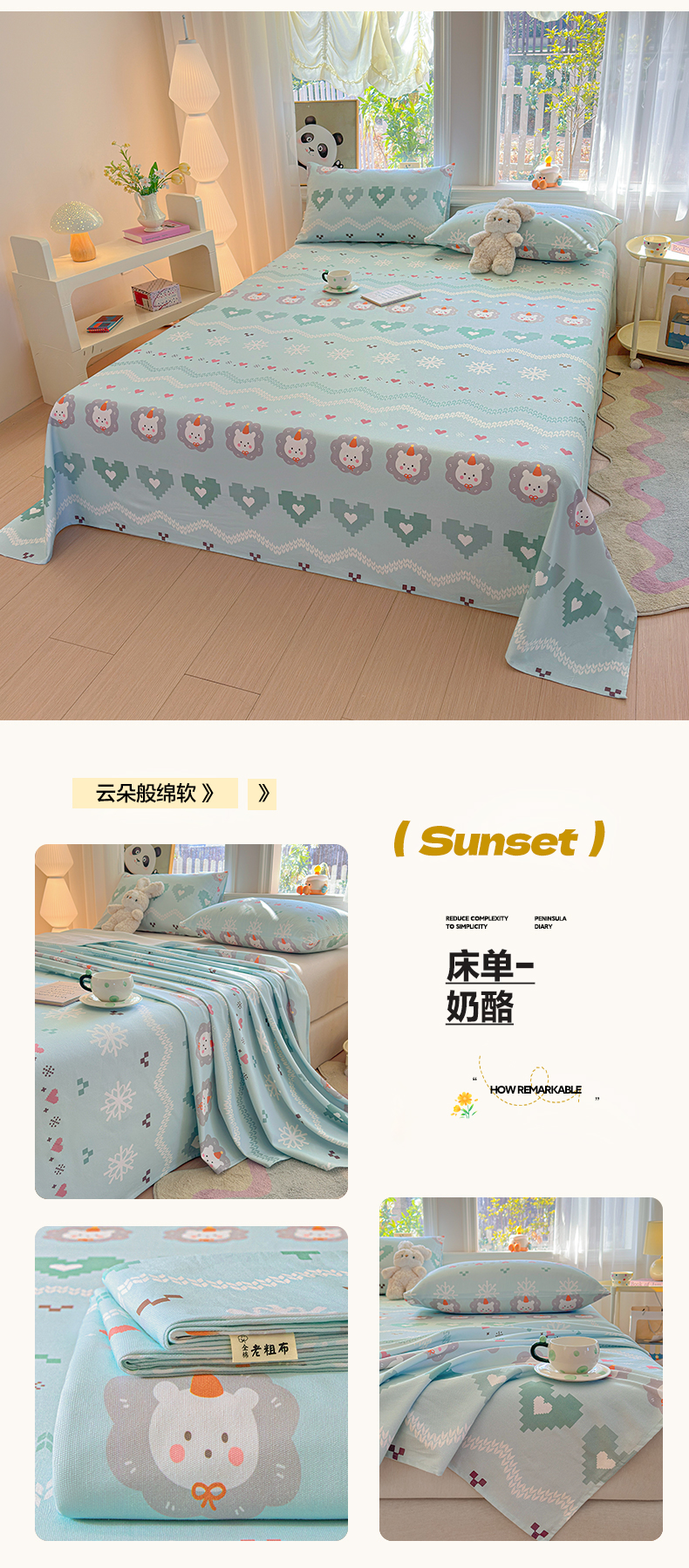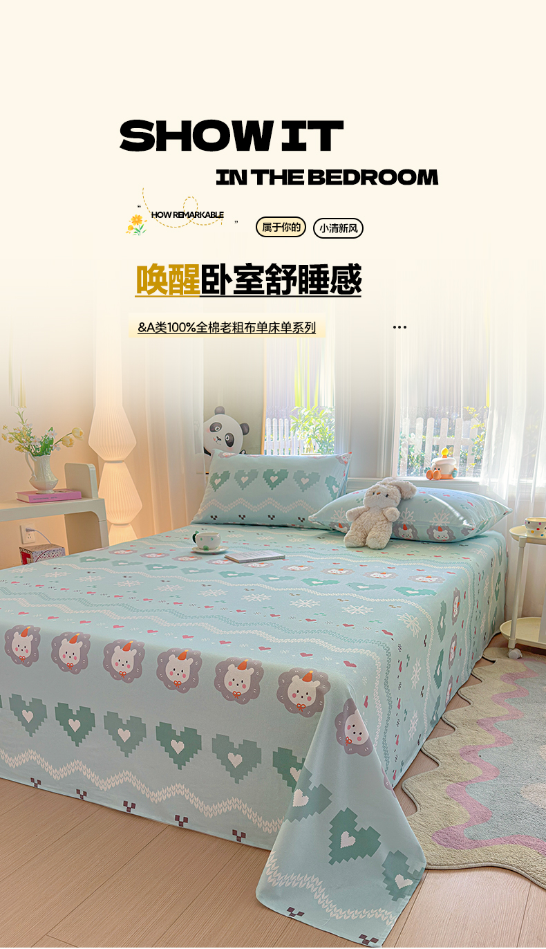 (总)莱登卡奴 2026新款A类100%全棉纯棉老粗布单床单系列,艾伦,冰淇淋,花田初夏蓝,腊肠犬,蓝恐龙,菱格米,莫奈灰,奶酪,泡芙兰,企鹅,旺仔腊肠狗,醒春,丫丫,云初,枝叶