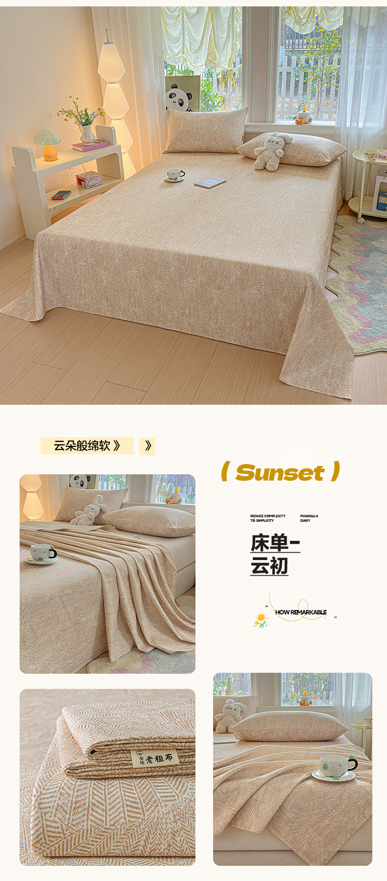 商品名称:莱登卡奴 2026新款A类100%全棉纯棉老粗布单床单系列 奶酪