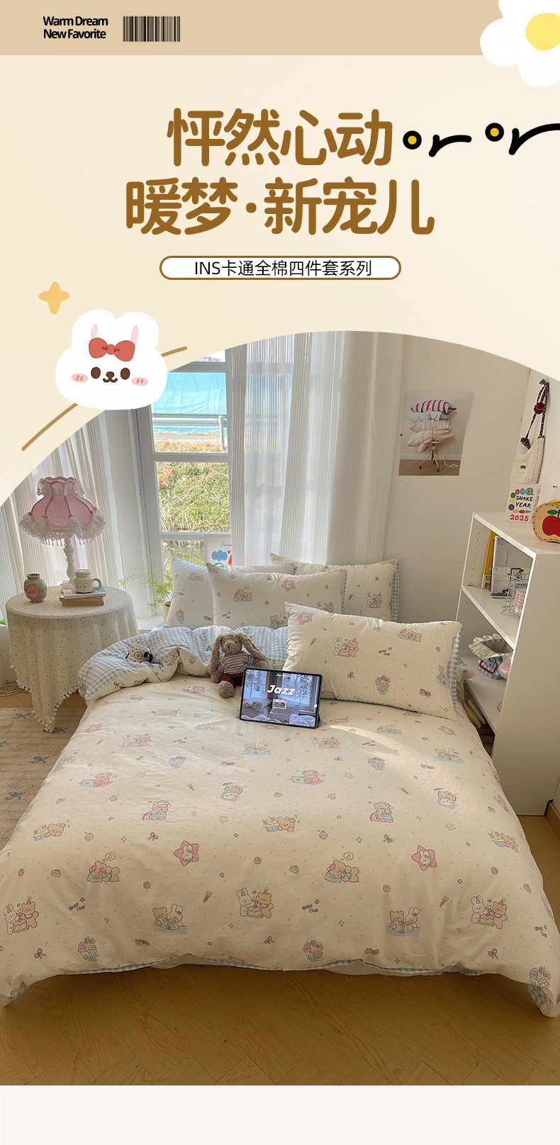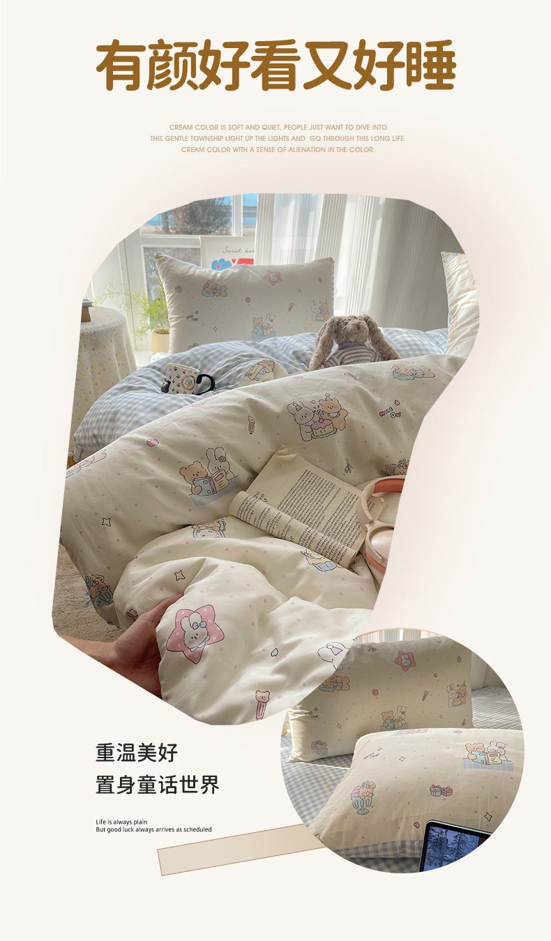 商品名称:六巷胡同 2026新款INS减龄可爱风卡通全棉四件套(第二系列) 小熊周末集
