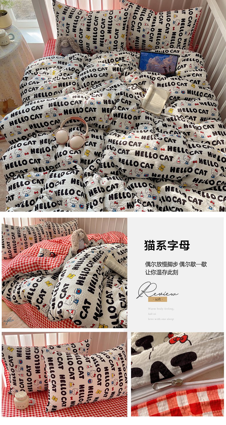 当前位置: 91家纺网 > 商品网购 > 床品套件 > 四件套 > 其它四件套 > 贝扬思家纺 2026新款高品质A类泡芙纱-可爱猫猫系列普通款四件套(110g) 萌星奇遇