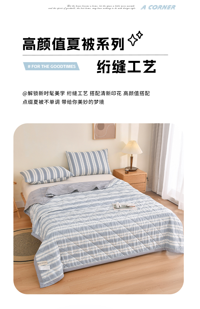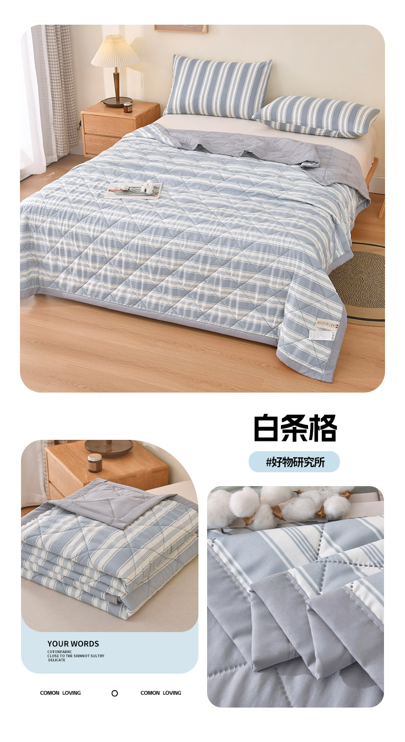 商品名称:培童 2025水洗棉夏被夏凉被空调被超声波压花礼品直播引流爆款 白条格