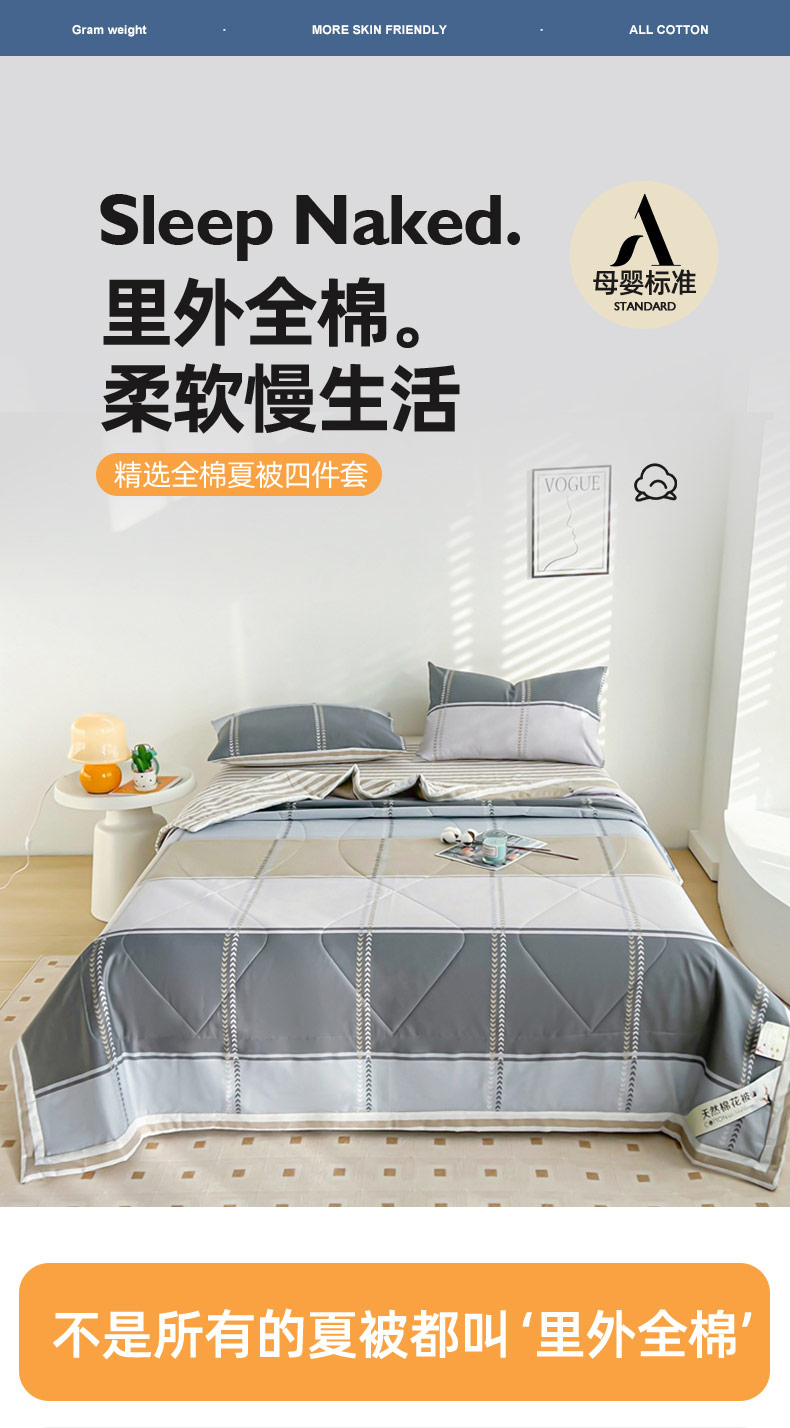 1.5m四件套:夏被150x200cm 床单230*245cm