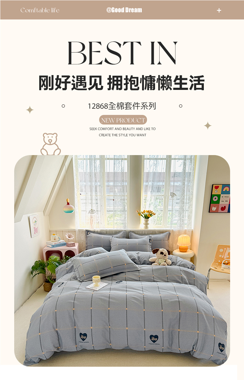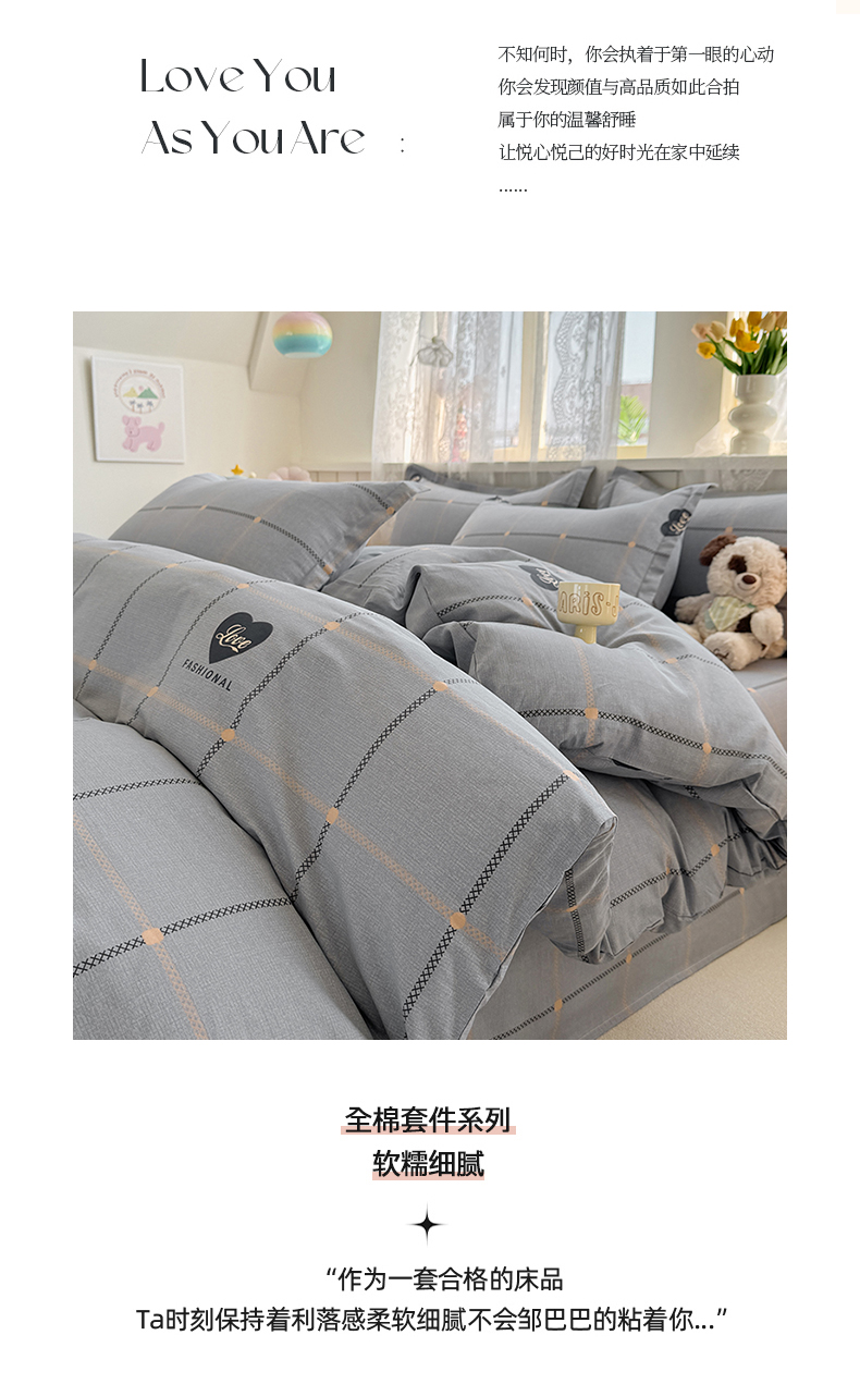 当前位置: 91家纺网 > 商品网购 > 床品套件 > 四件套 > 全棉普通四件套 > 简冠家纺 2026新款12868印花全棉四件套纯棉四件套 心动集灰
