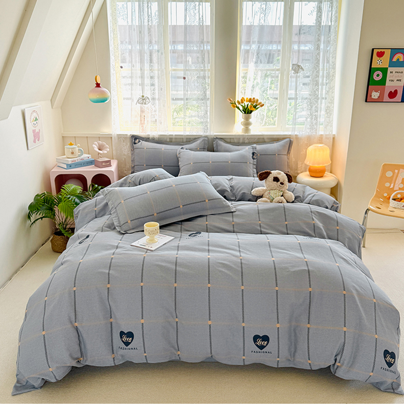 简冠家纺 2026新款12868印花全棉单被套 心动集灰