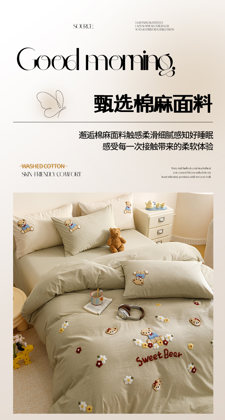 (总)艾莱家纺 2025新款A类精梳贴布纯棉刺绣花四件套-星澜,星澜-春绿,星澜-美拉德,星澜-蜜糖粉,星澜-松露咖,星澜-小米,星澜-烟云灰