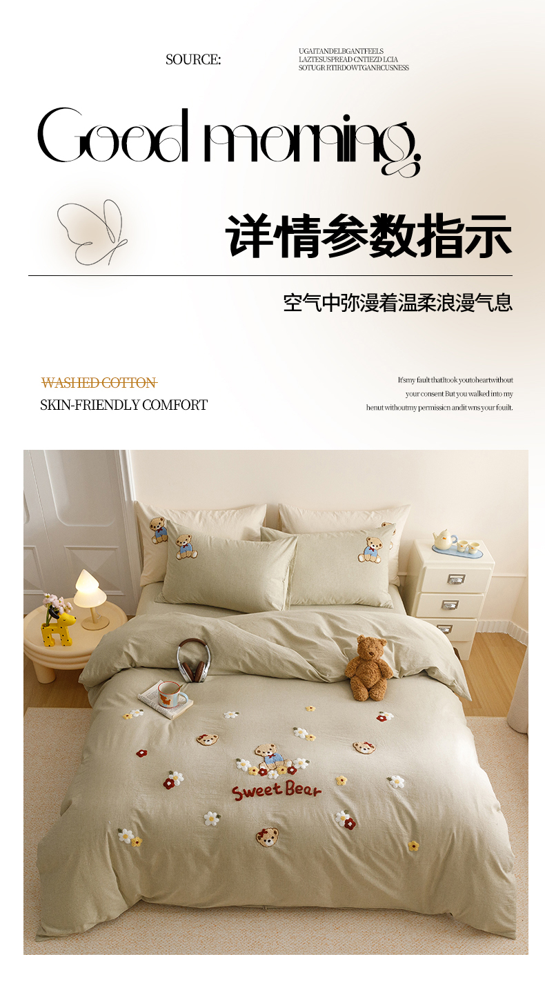 (总)艾莱家纺 2025新款A类水洗棉加厚绣花四件套-栀夏,栀夏-草莓奶粉,栀夏-格林棕,栀夏-暮光绿,栀夏-青叶紫,栀夏-银蓝