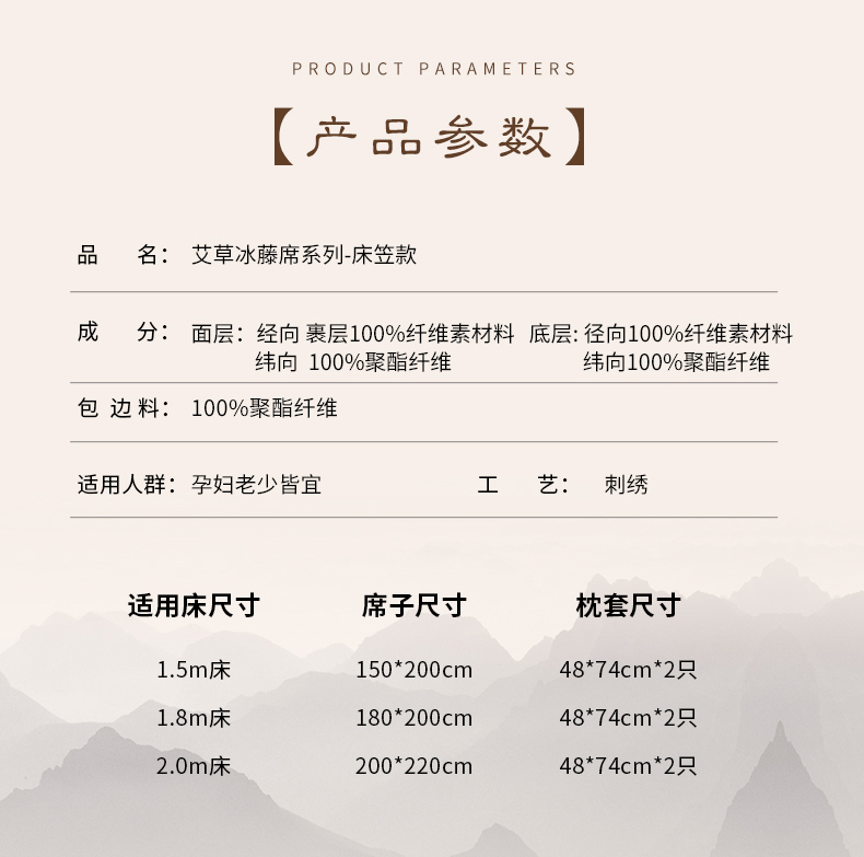 当前位置: 91家纺网 > 商品网购 > 床上用品 > 凉席 > 凉席套件 > 小牛席业 2026新款艾草清香冰藤-双面席系列(床笠款) 艾草清香冰藤席系列(床笠款)-紫色