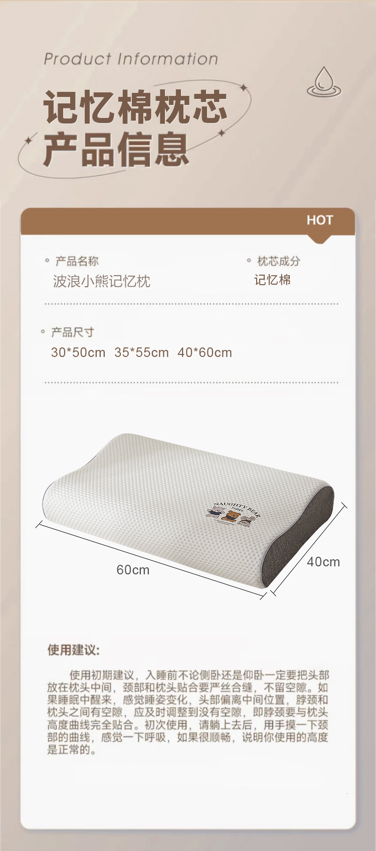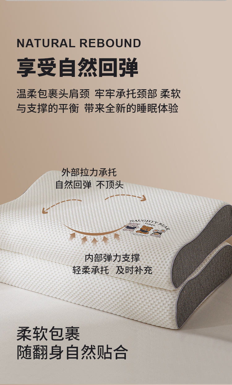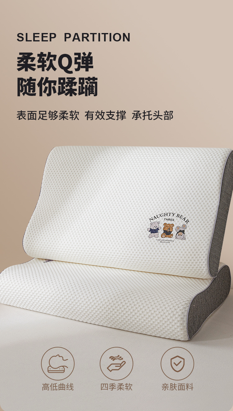 商品名称:(总)小桃姐家纺 2025新款卡通小熊 记忆枕芯 记忆棉护颈枕芯 太空记忆枕芯 儿童记忆枕 低枕芯多尺寸