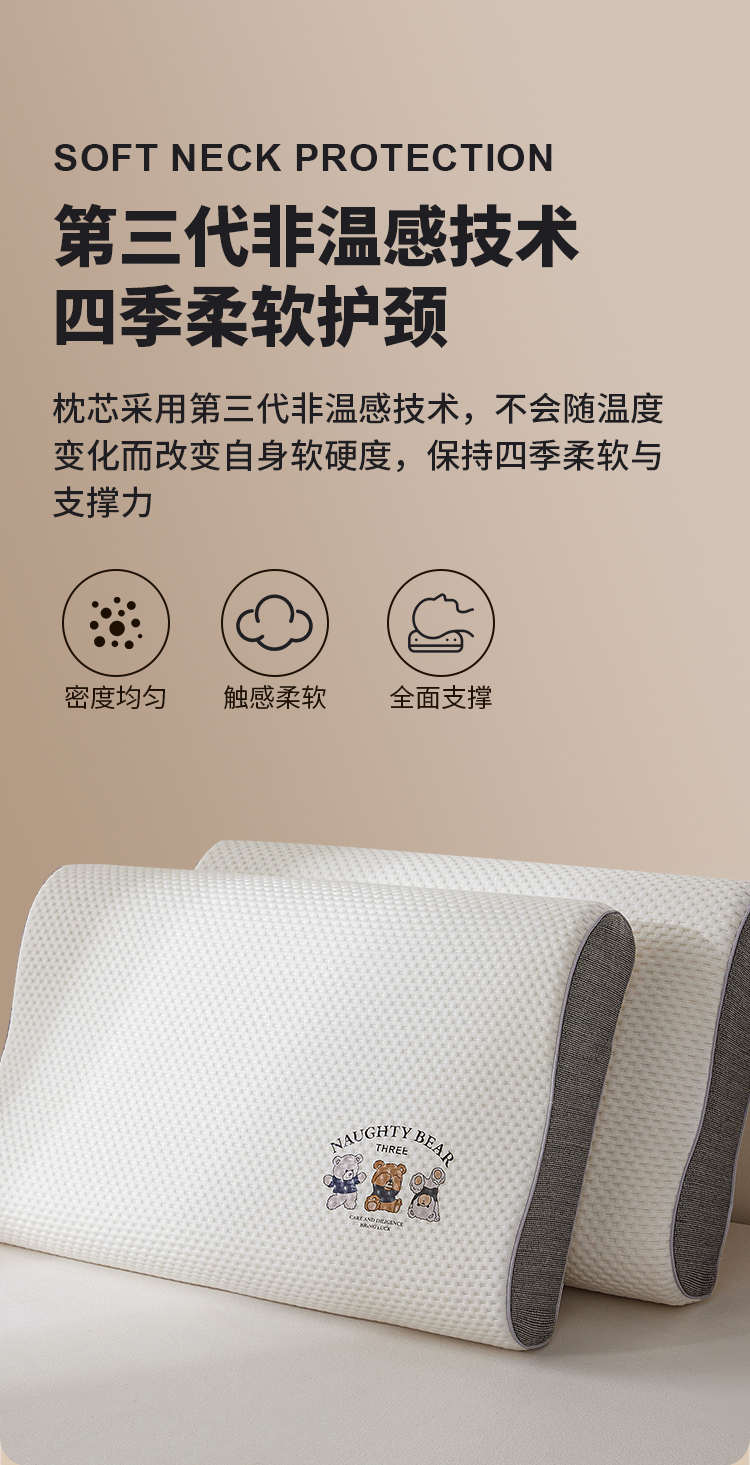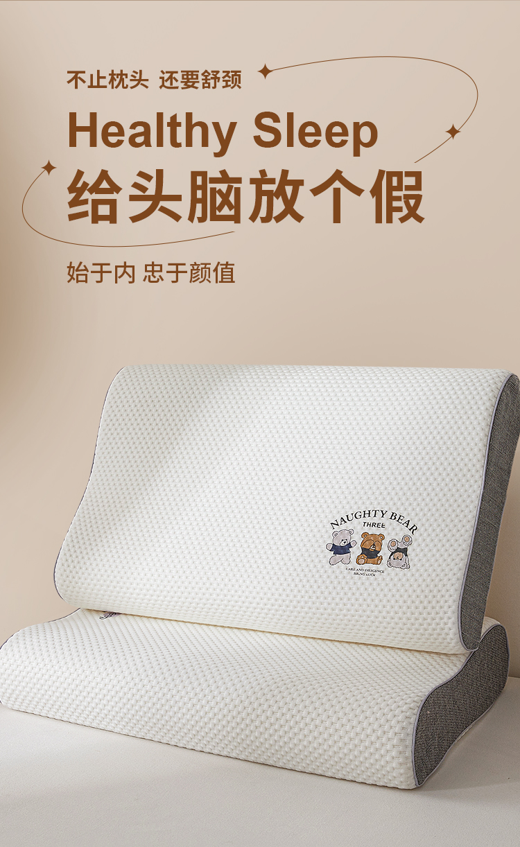 (总)小桃姐家纺 2025新款卡通小熊 记忆枕芯 记忆棉护颈枕芯 太空记忆枕芯 儿童记忆枕 低枕芯多尺寸
