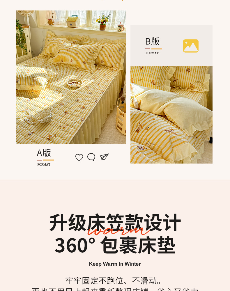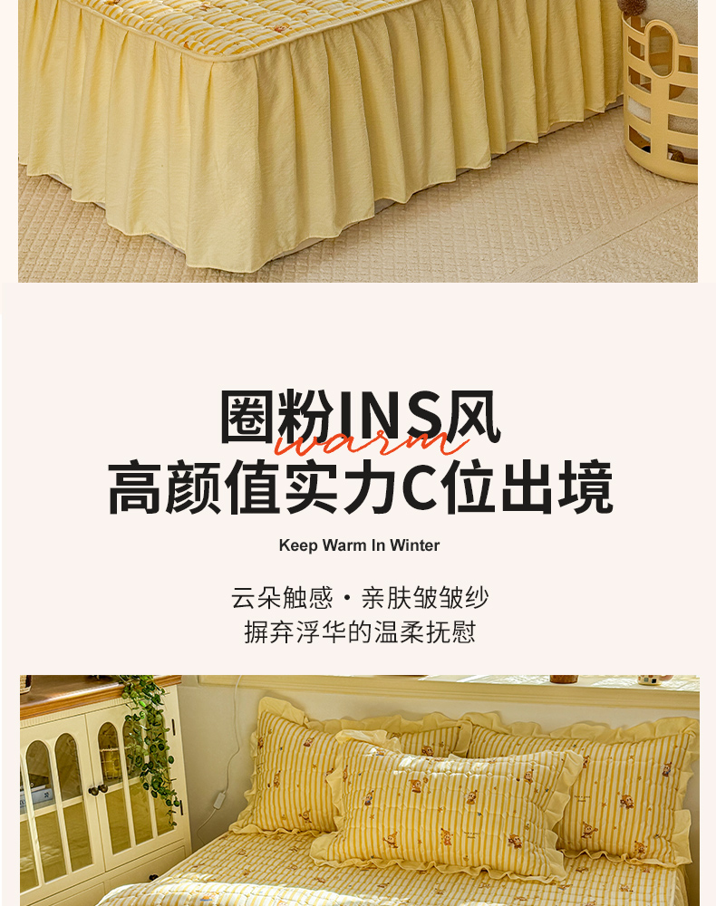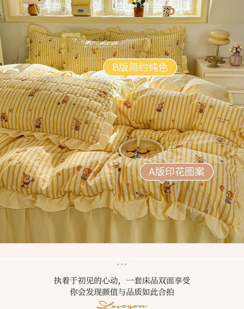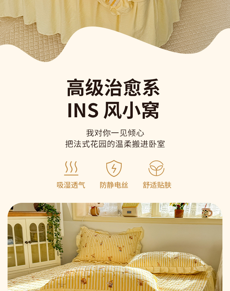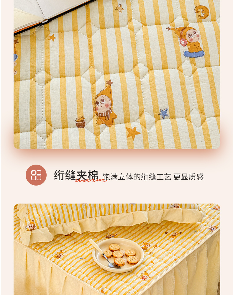 (总)禧缘家纺(原梦想家) 2026新款小清新皱皱纱木棉床裙式床笠印花三件套,彩虹,蝶梦,花田,沐春,南瓜,泡芙,甜筒,童话,兔兔,雾迟,星星,月光