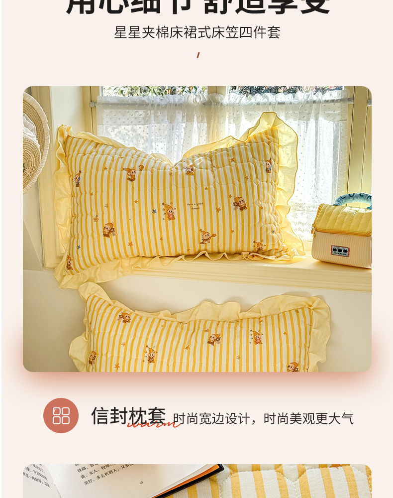 (总)禧缘家纺(原梦想家) 2026新款小清新皱皱纱木棉床裙式床笠印花单枕套,彩虹,蝶梦,花田,沐春,南瓜,泡芙,甜筒,童话,兔兔,雾迟,星星,月光