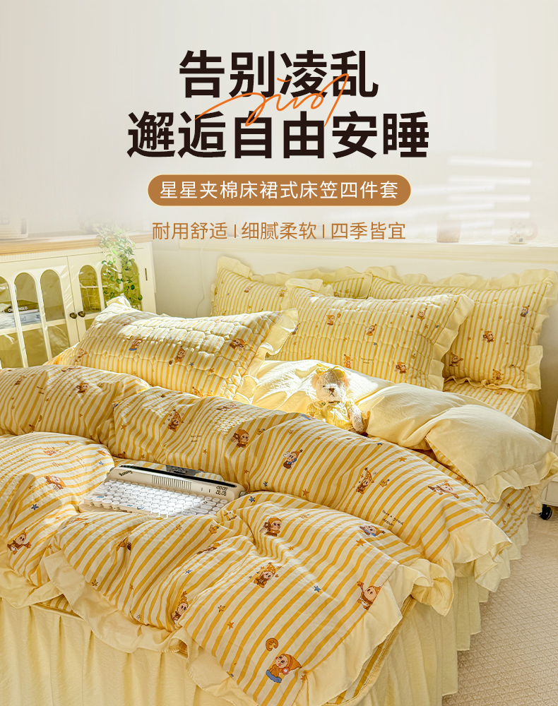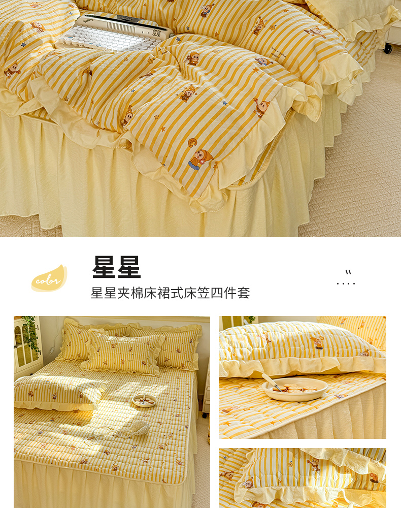 商品名称:禧缘家纺(原梦想家) 2026新款小清新皱皱纱木棉床裙式床笠印花单被套 星星