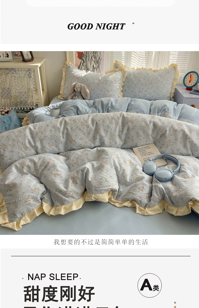 (总)迪梦姿家纺 2026年秋冬新款韩版蕾丝花边水洗棉四件套-茉莉,茉莉-奶白,茉莉-奶油黄,茉莉-暖豆沙,茉莉-苹果绿,茉莉-天真蓝,茉莉-仙女粉,茉莉-紫