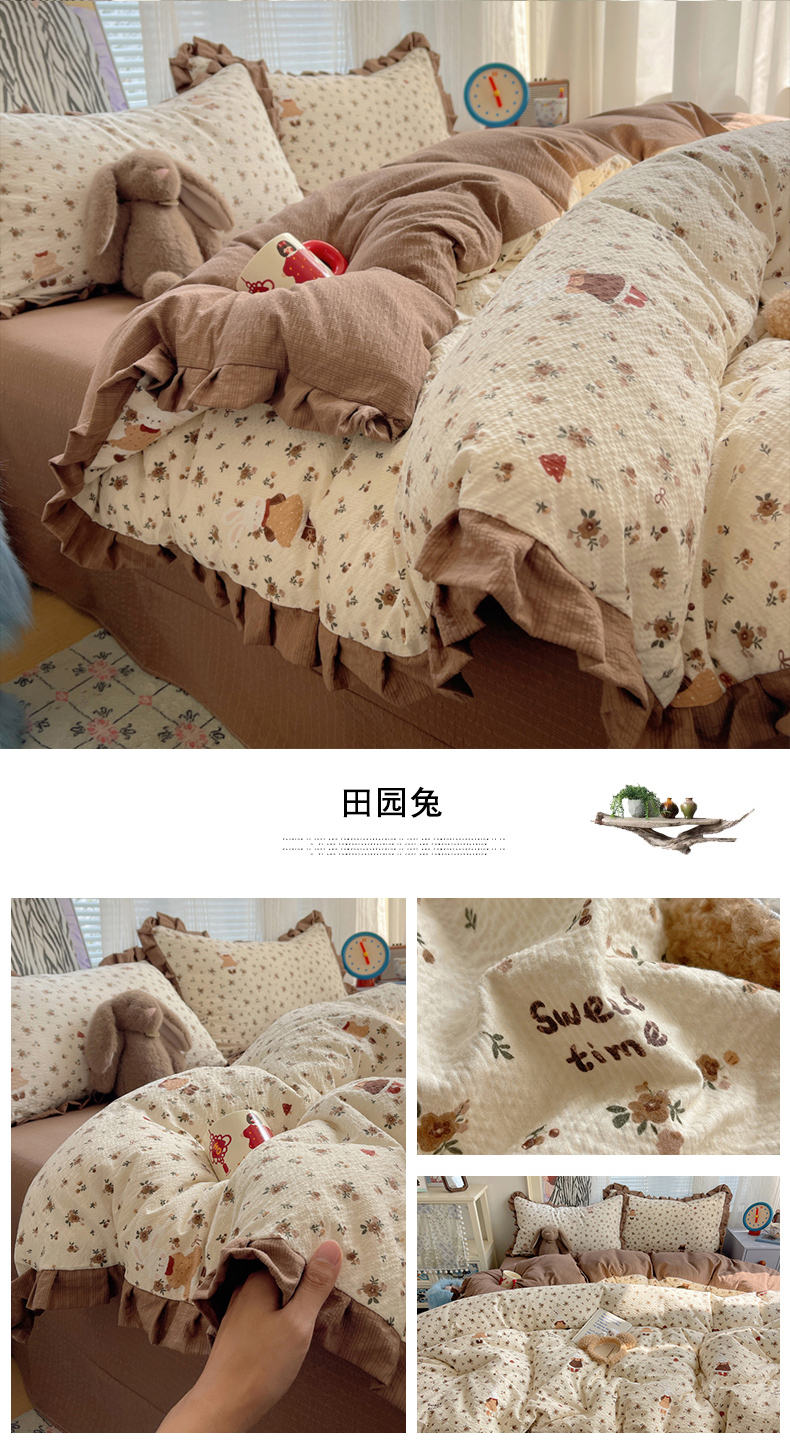 迪梦姿家纺 2026新款高克重泡芙纱泡泡纱床单款四件套系列 小兔裙边