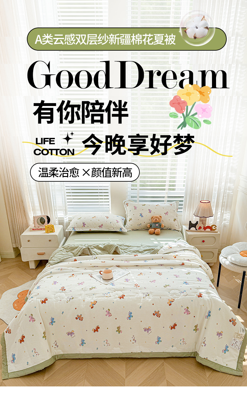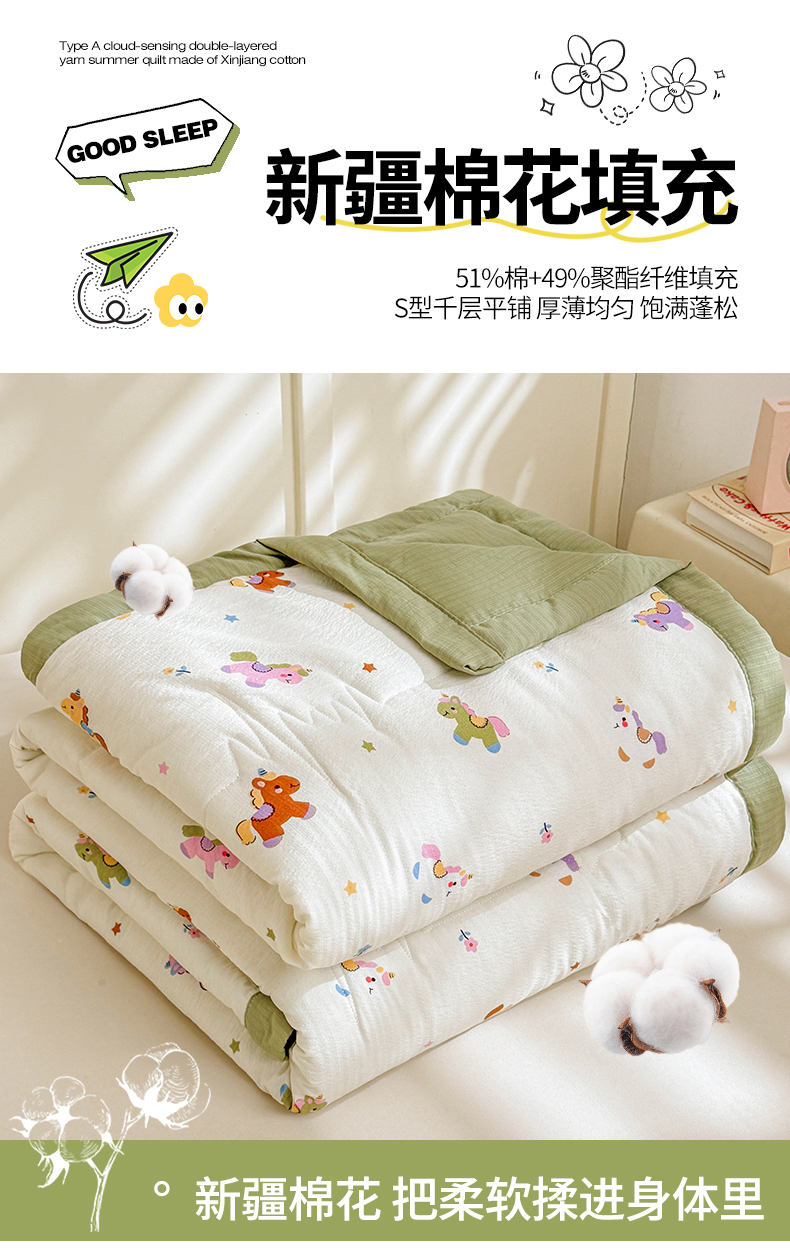 商品名称:(总)2026新款A类新疆棉花夏凉被加宽包边水洗棉卡通印花吸湿透气棉花夏被空调被