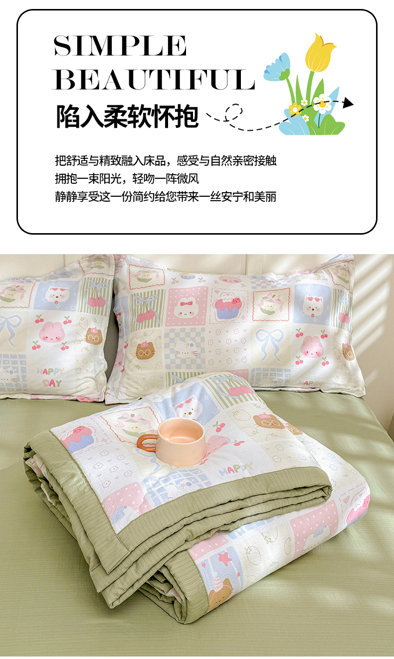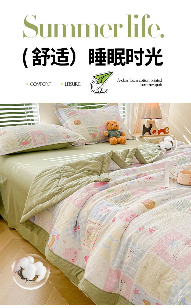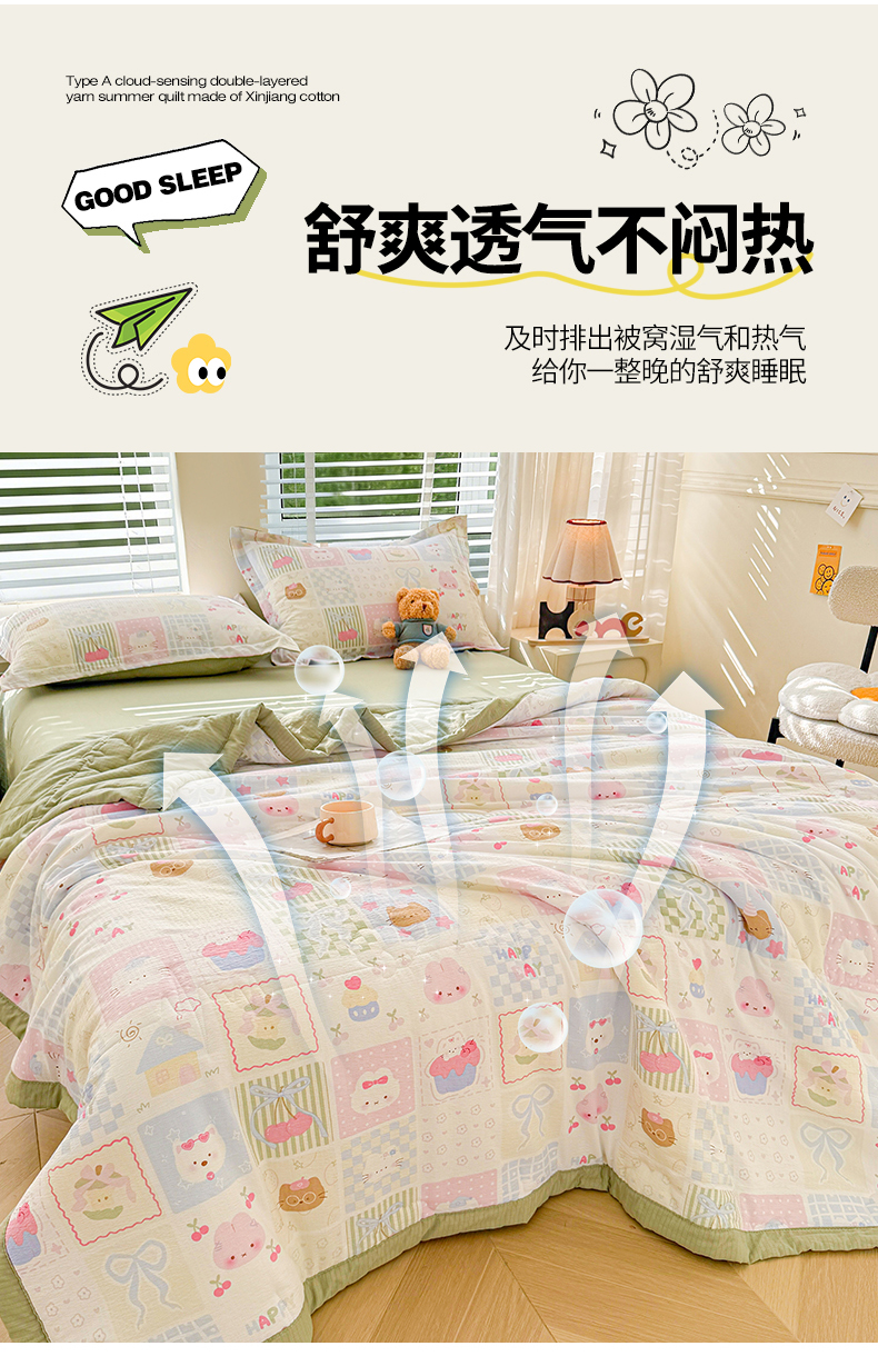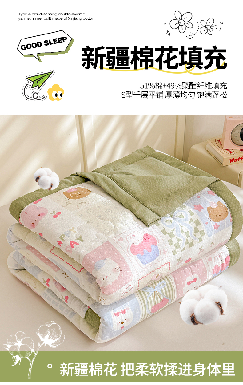 商品名称:2026新款A类新疆棉花夏凉被加宽包边水洗棉卡通印花吸湿透气棉花夏被空调被 云感甜品乐园