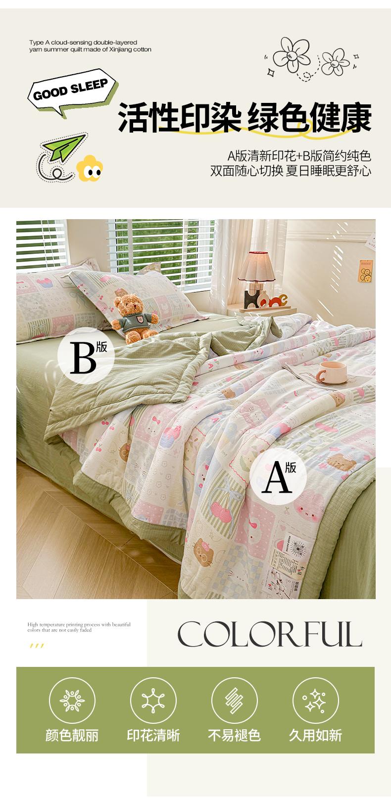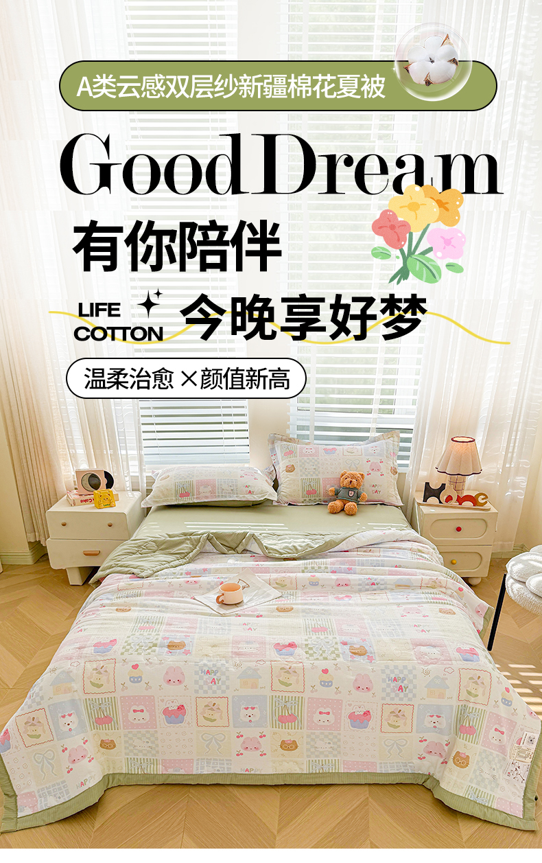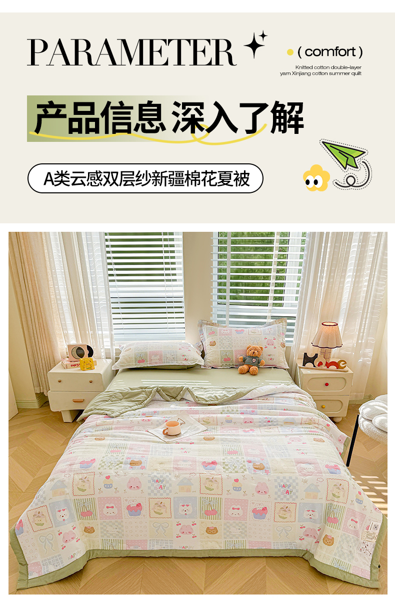 商品名称:2026新款A类新疆棉花夏凉被加宽包边水洗棉卡通印花吸湿透气棉花夏被空调被 云感甜品乐园