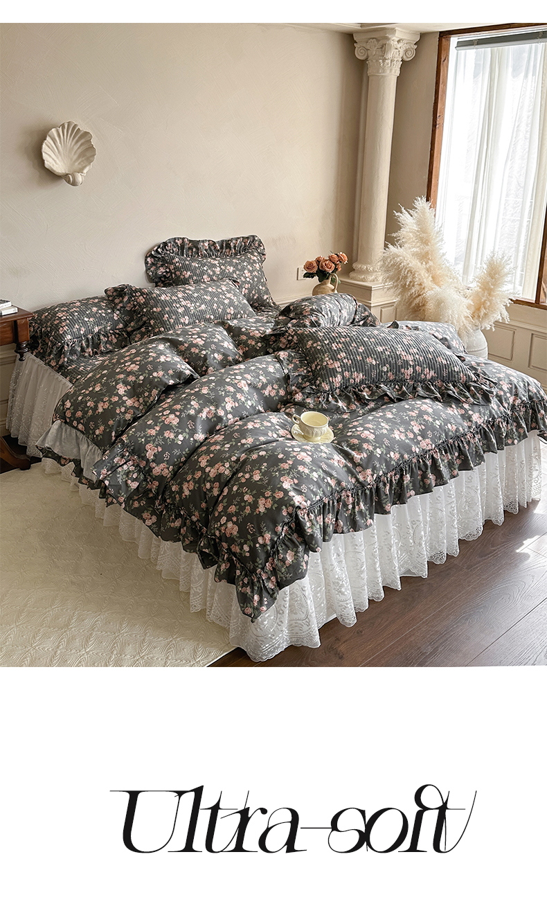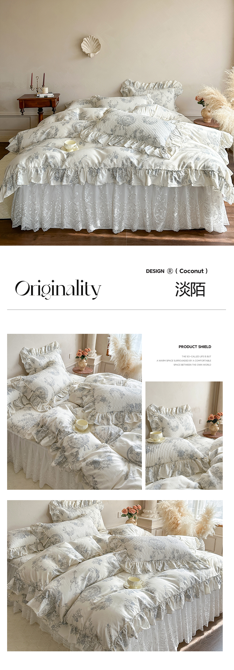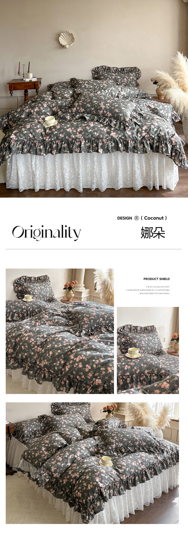 商品名称:瑞宝 2026新款法式全棉印花床裙四件套 紫花蕾