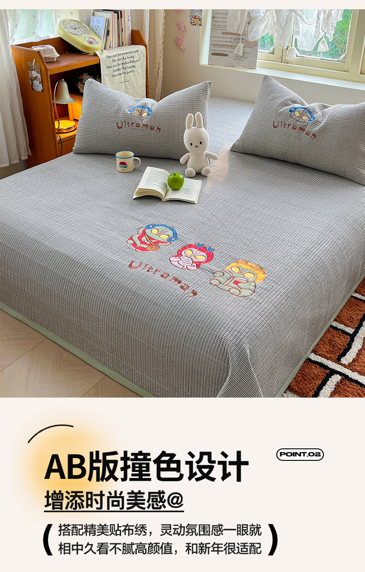 (总)丫丫家纺 2026新款古法水洗棉贴布绣加厚床盖三件套,奥特兄妹,吉象三宝,美小蒂,萌萌兔绿,旺财狗狗,熊猫卡皮