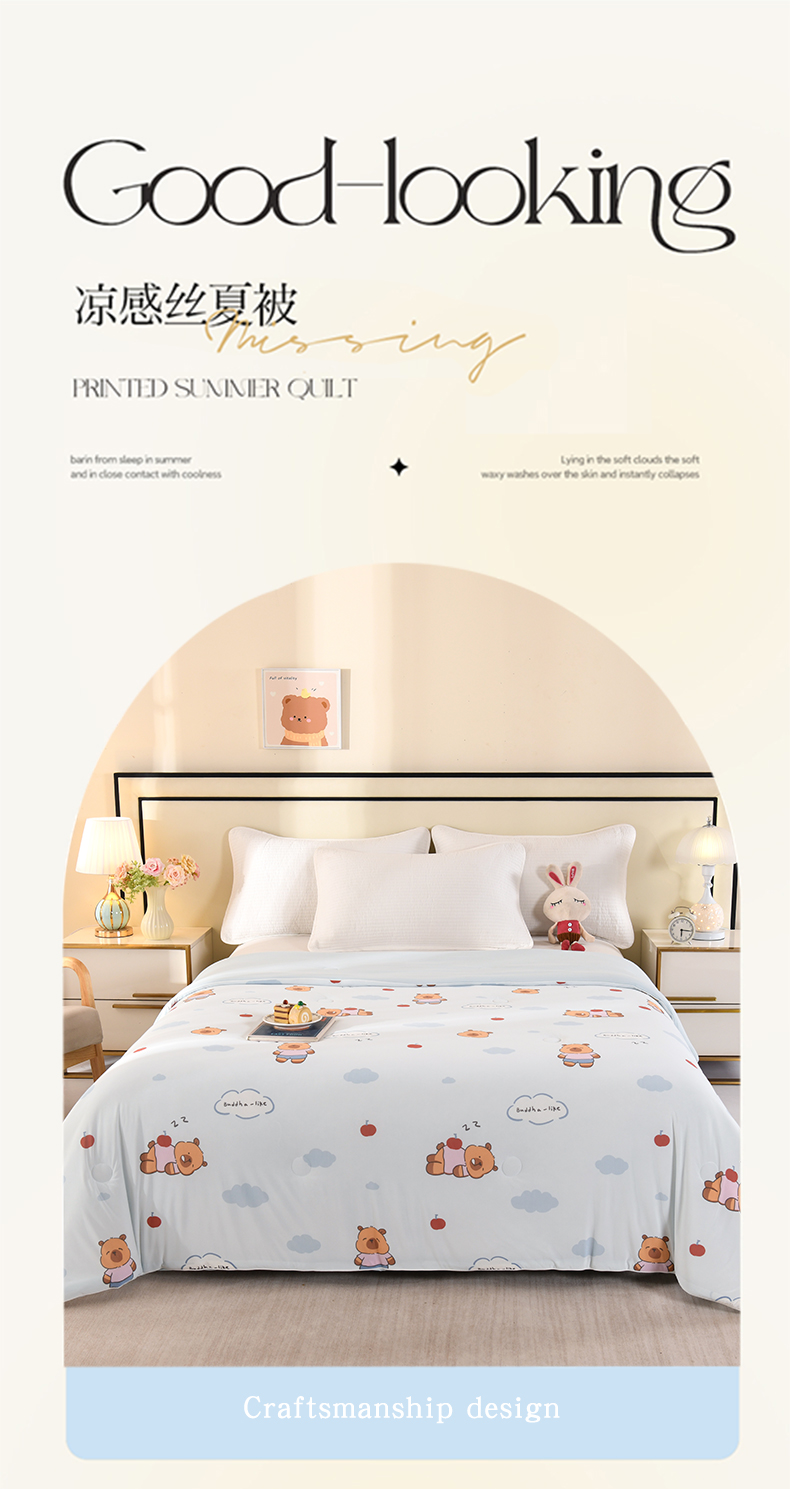 (总)诗雅纺织 2026新款仿锦氨针织凉感丝夏被,波点,花夕,卡皮巴拉,兰夕,流金岁月,深宝蓝,宇航员