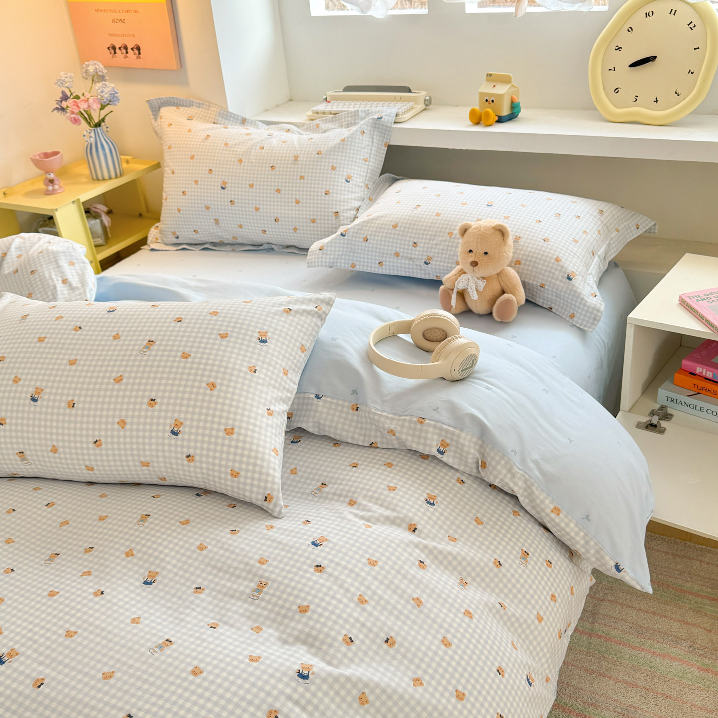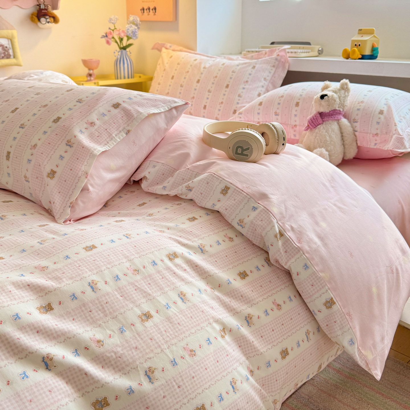 景眠 2026新款全棉13372小清新简单款四件套 格子熊-粉