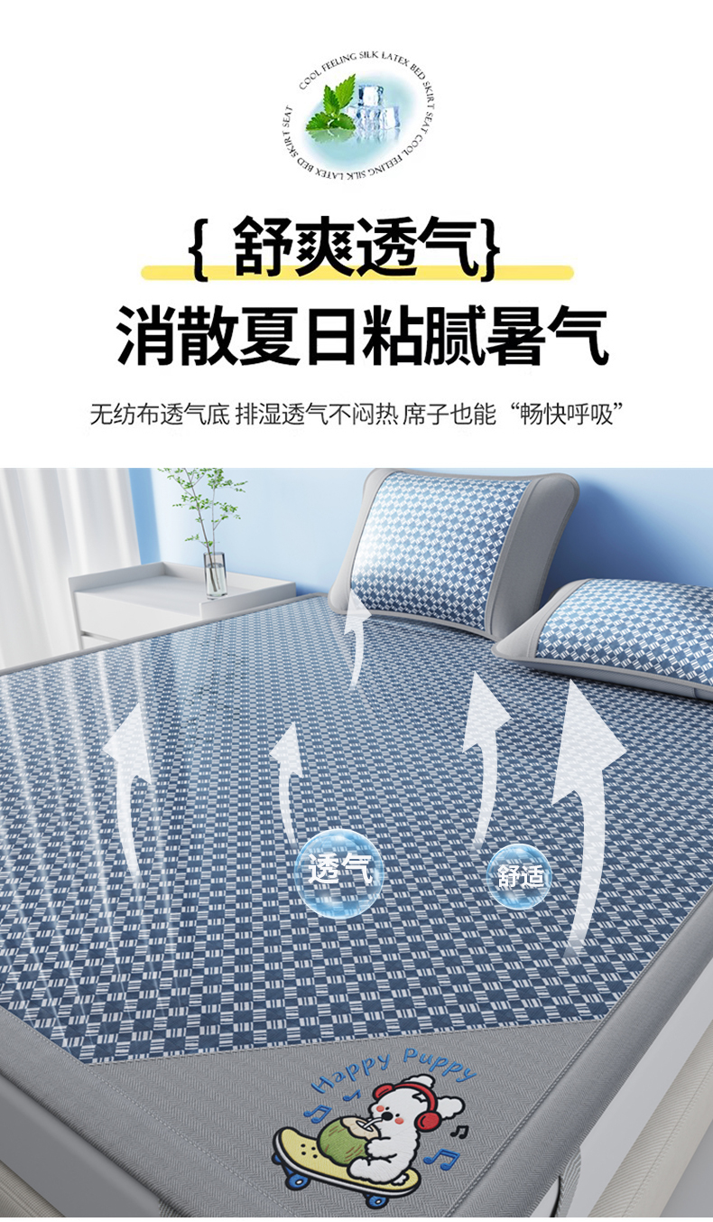 (总)梦卡迪 2026新款A类爱心卡通凉感豆豆绣花床席,滑板小狗-蓝,胡萝卜小兔-粉,三只小马-灰,三只熊猫-绿,幸运小狗-咖