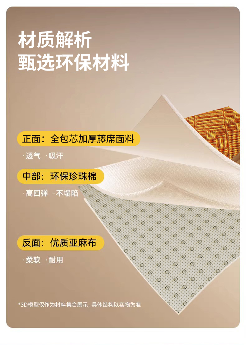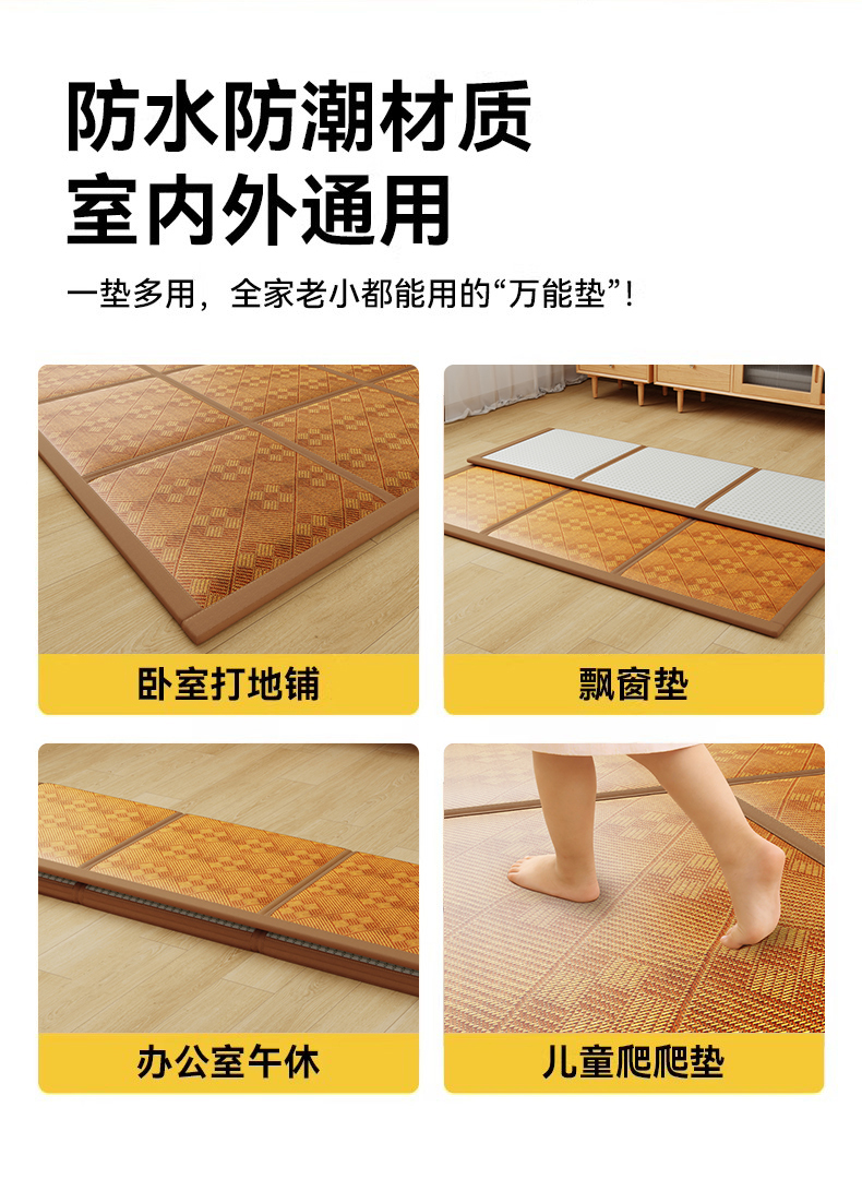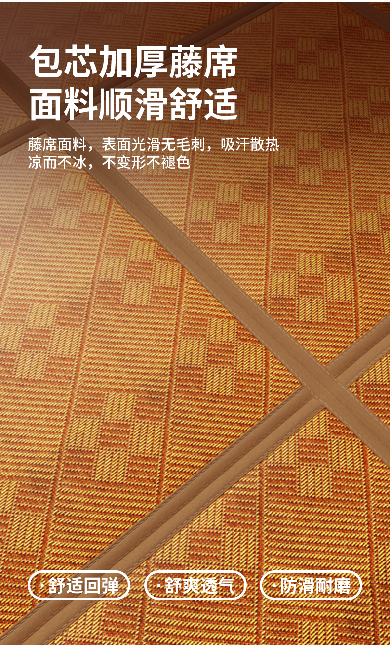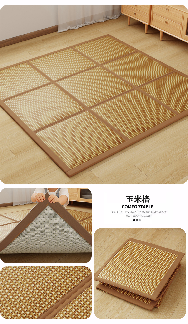 (总)梦卡迪 2026新款A类双面真冰藤凉席学生宿舍寝室夏天席子提花凉感软席,绿色,咖色,灰色