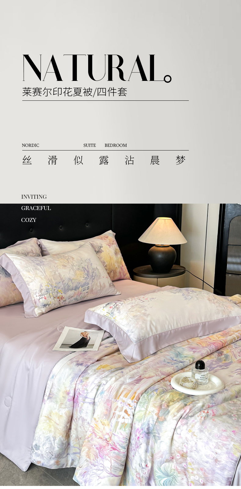 当前位置: 91家纺网 > 商品网购 > 床品套件 > 四件套 > 莱赛尔四件套 > 慕晨 2026新款大宽边高级简奢款凉感天丝莱赛尔数码印花丝滑丝绸四件套直播热款 山野间