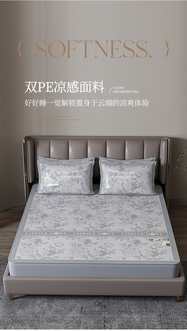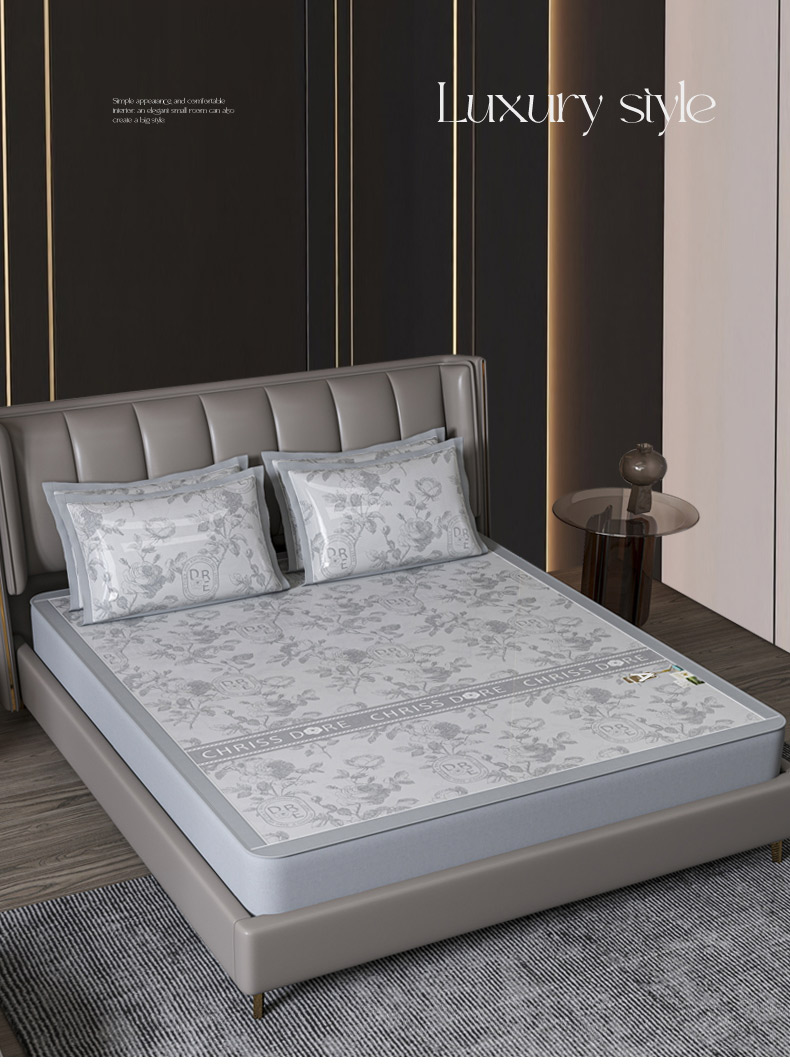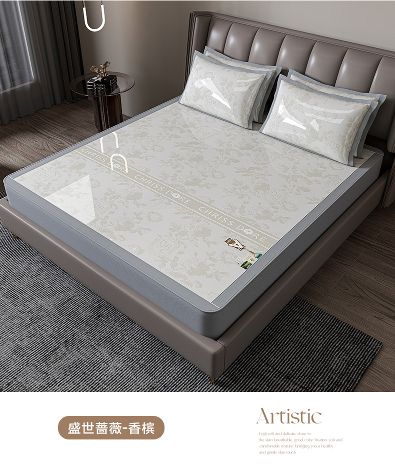 小牛席业 2026春夏新款【建模风格】双PE高凉感-盛世蔷薇凉感冰丝席(床笠款) 盛世蔷薇-灰色
