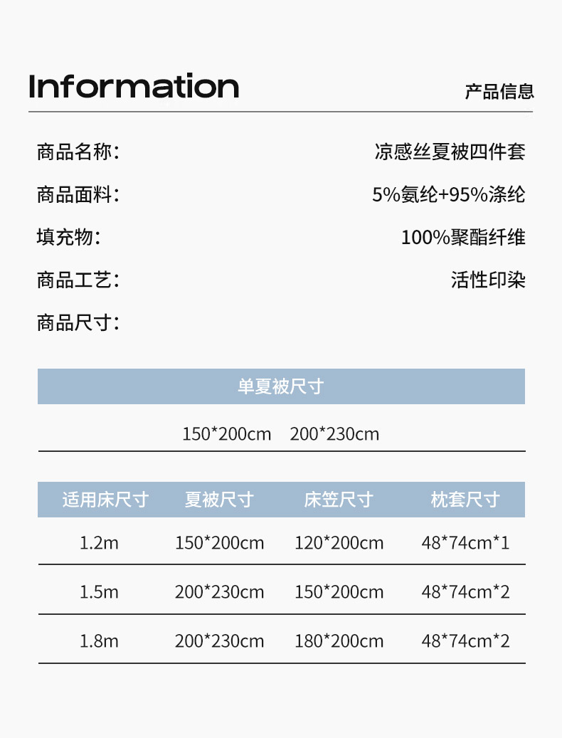 商品名称:吾诺家居 2026新款冰爽系列-凉感丝夏被四件套 海蓝