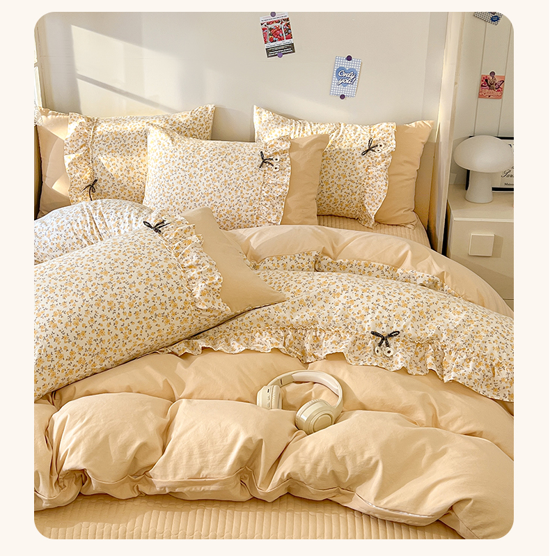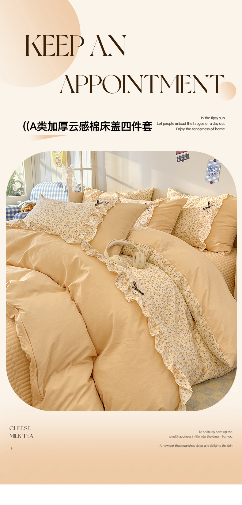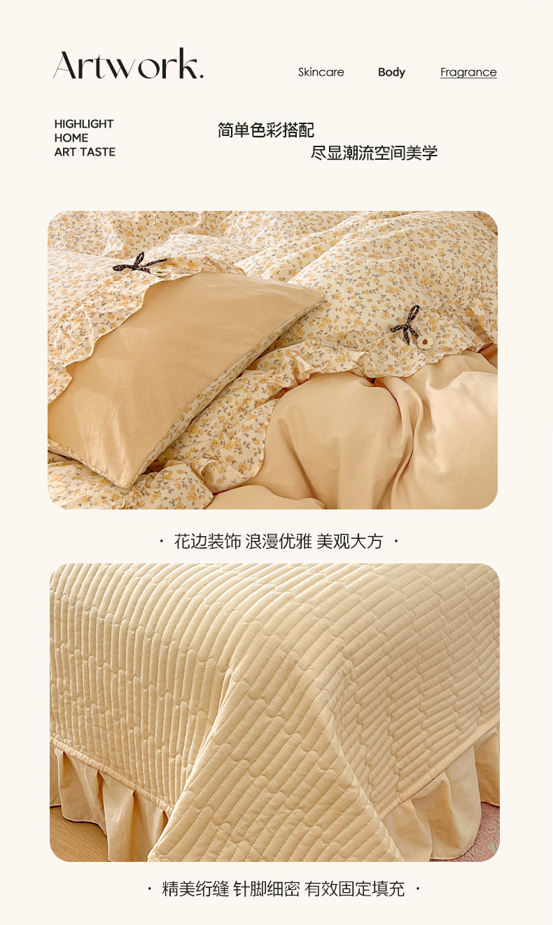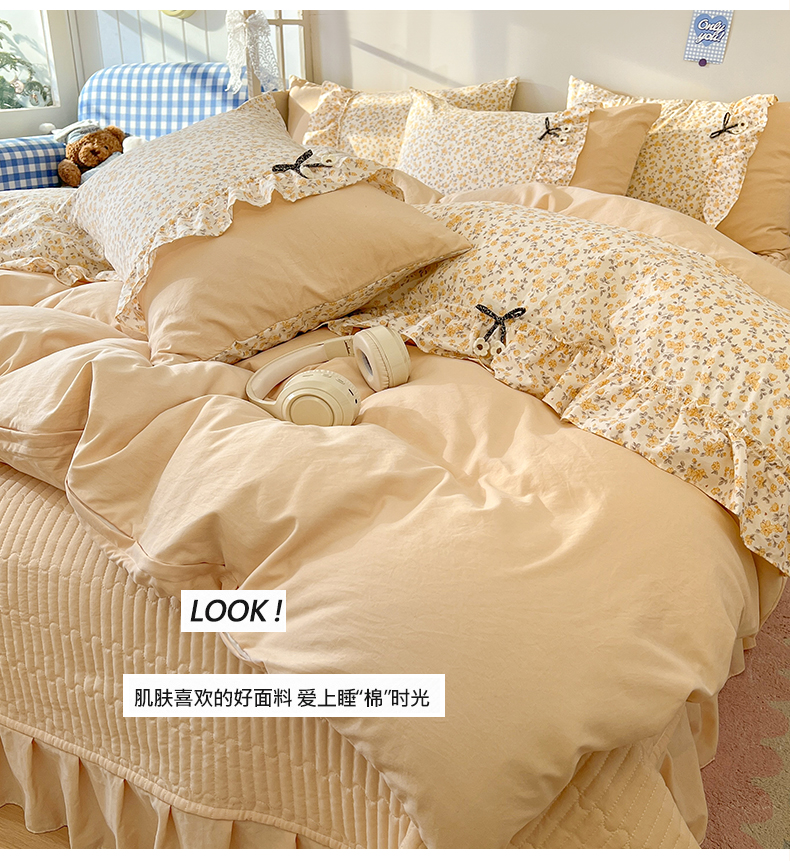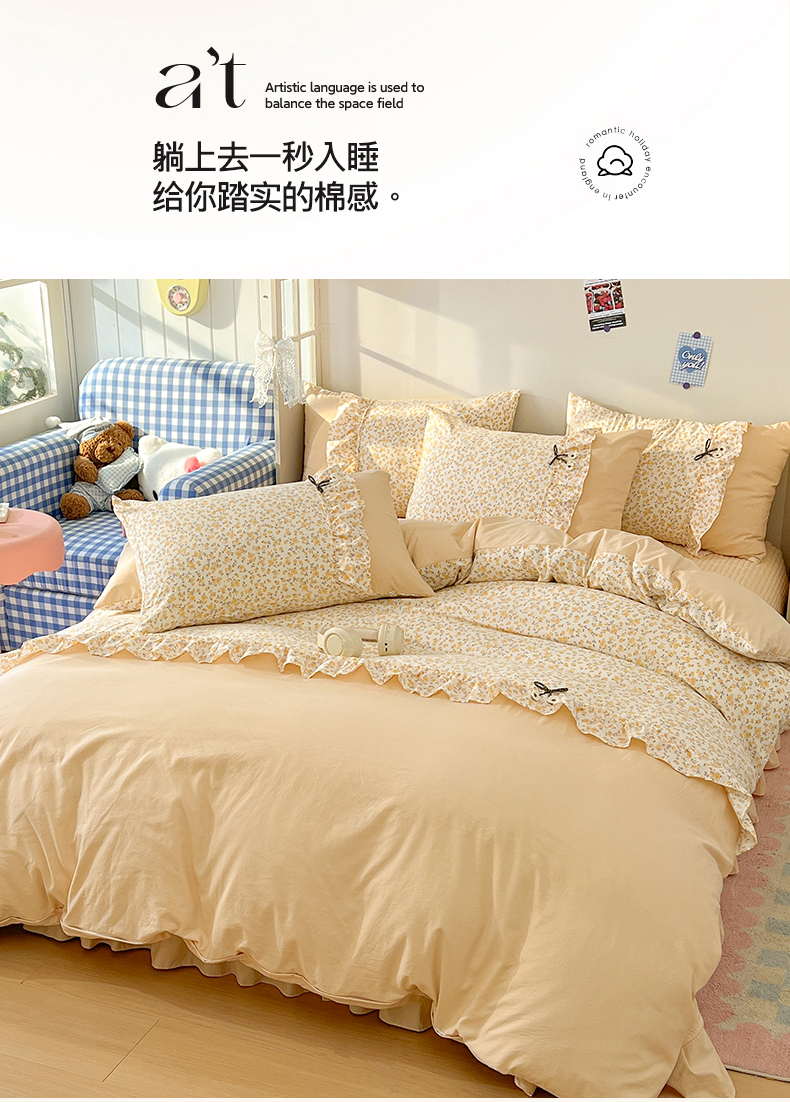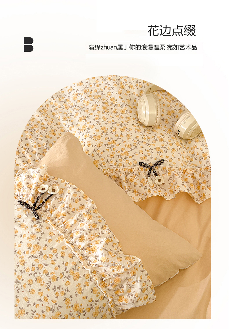 (总)美梦家纺 2026新款高克重全棉花边云感棉床盖四件套,希雅莉·米,雅格·粉,樱桃蜜·咖,尤丽叶·咖,紫藤碎花·咖,莓莓素语·粉,暖小象·兰,浅叶·米,希雅莉·灰
