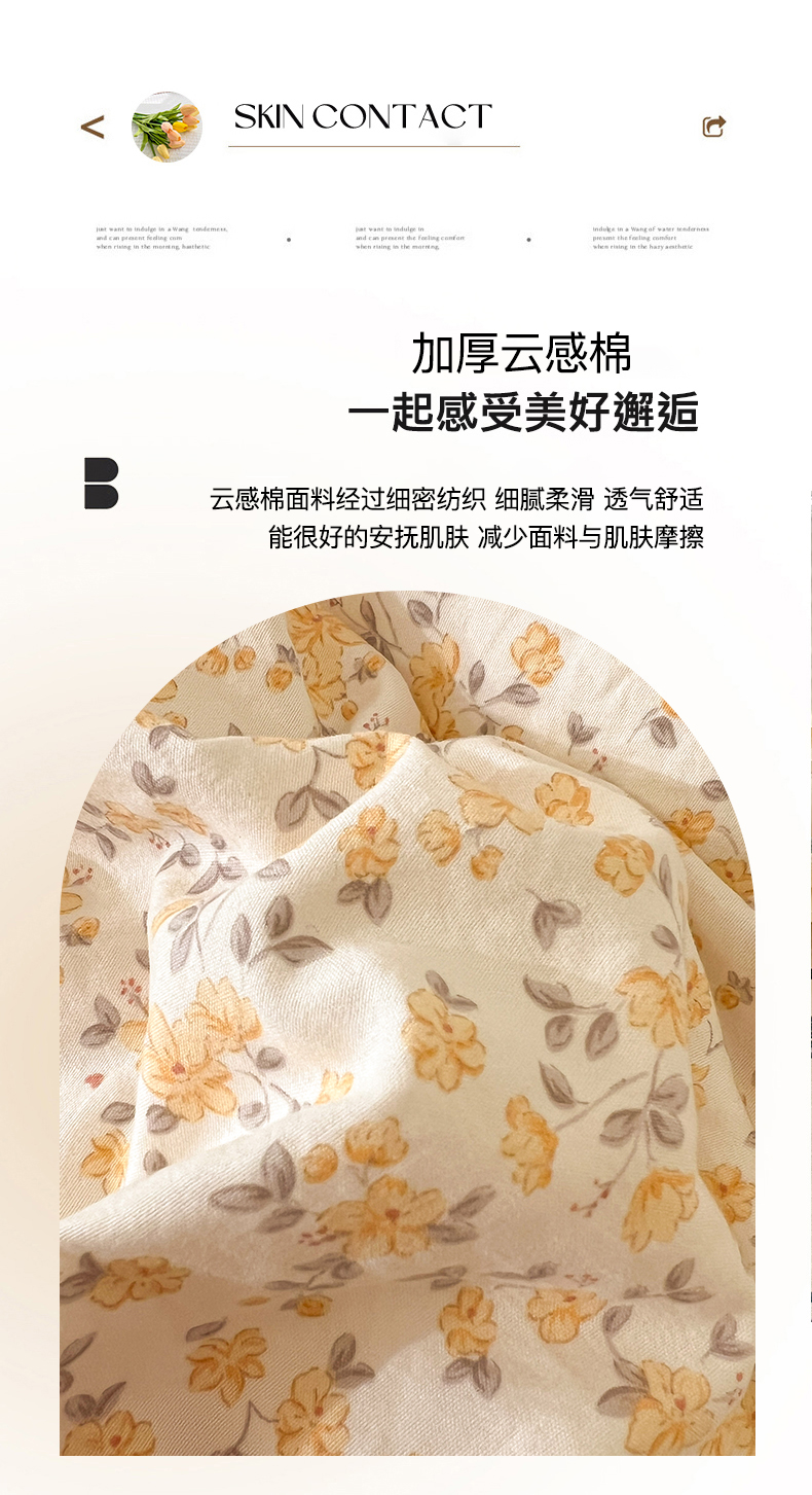 商品名称:美梦家纺 2026春夏新款加厚云感棉床盖四件套 花影